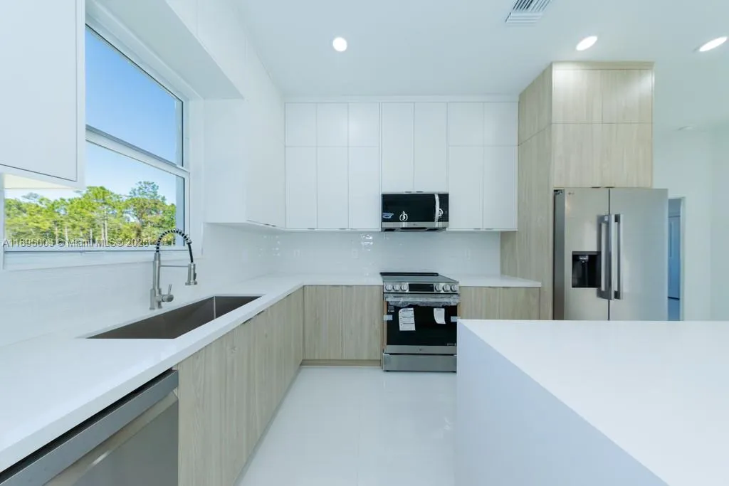 Beautiful property,t he investors are giving contributions for closing costs and are open to making a fair negotiation. This beautiful property, built in 2025, 3 Bedroom + Den, and 2 Bathrooms, is located in a central area of the Lehigh Acres, approx 2 miles from the schools, 2.5 miles from the central Lee Avenue and approx 3 miles from the Hospital. Built on a 0.5 acre lot, with luxurious finishes. Enjoy a completely porcelain floor and modern kitchen and bathroom cabinets. The A/C unit is 3.5 tons. It also has a double parking lot and a beautiful driveway with modern pavers. Strategic location, the seller have a survey copy if you want to save money. A new washer and dryer are included in your purchase. Septic Tank with 2 years of free service and guaranty