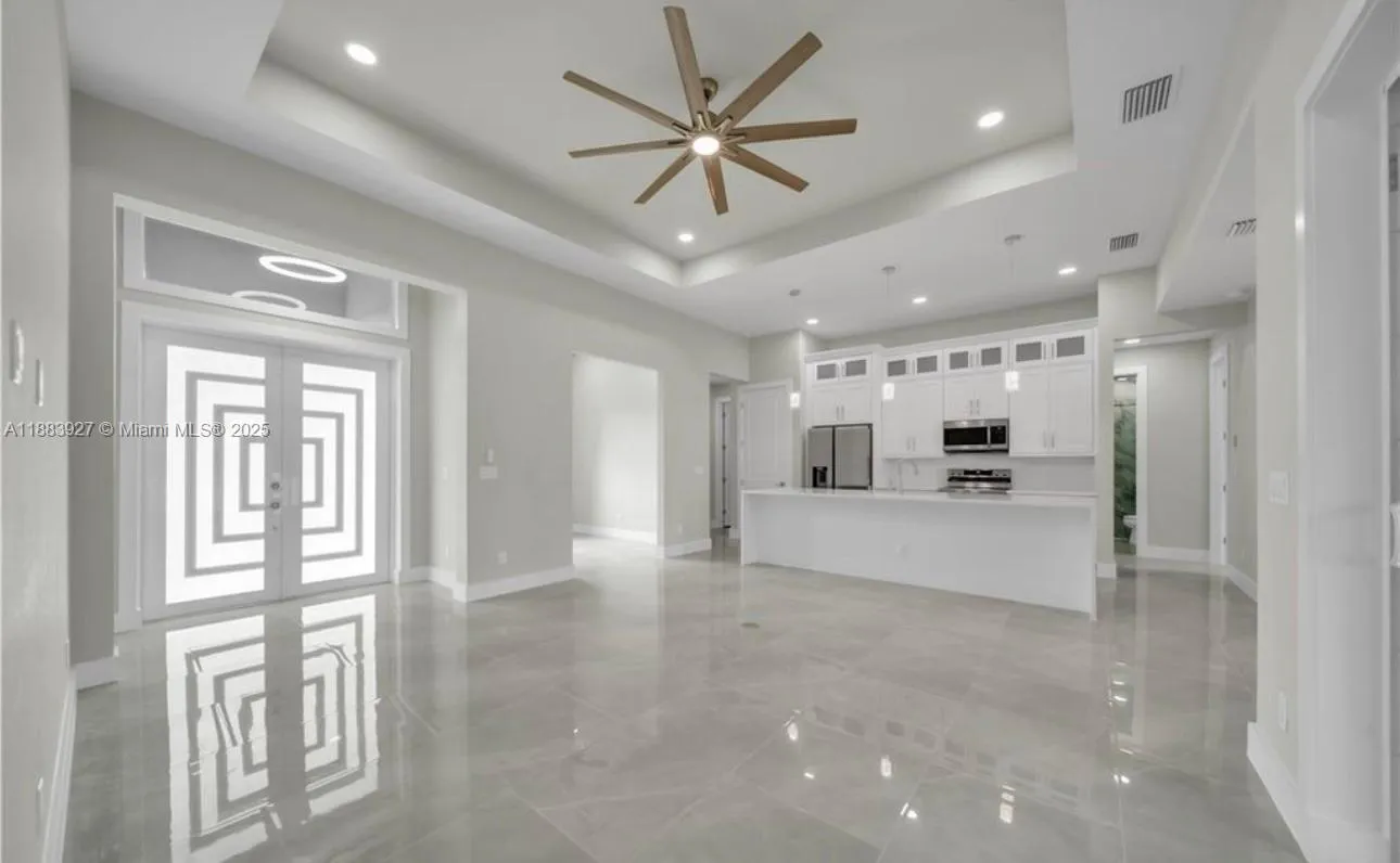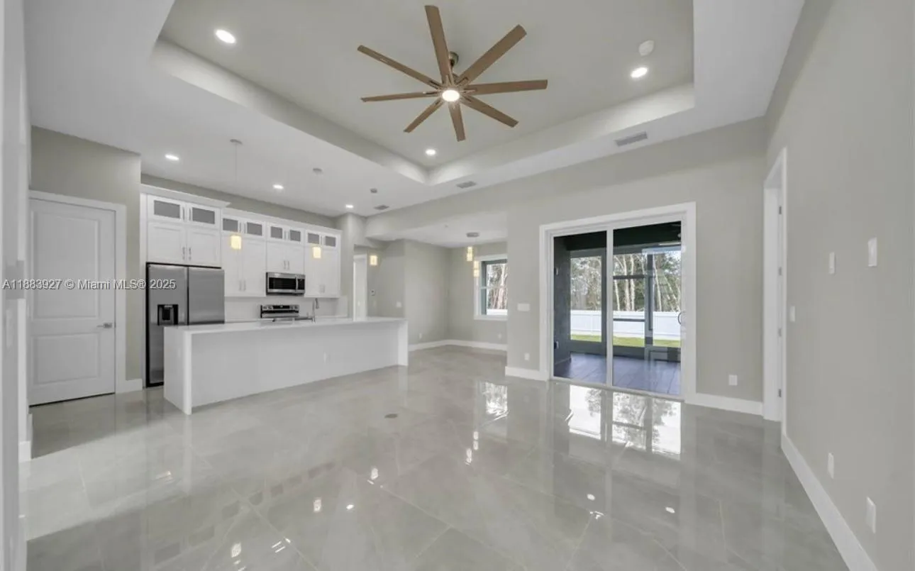 Stunning NEW Home for Rent in Lehigh Acres! This spacious 3-bedroom, 2-bath residence offers modern living with impact windows, quartz countertops, stainless steel appliances, brand-new washer and dryer, and elegant porcelain tile throughout. Enjoy an open kitchen, tiled bathrooms, ceiling fans, recessed lighting, and a fenced yard for privacy and outdoor gatherings. The home also features a finished garage with epoxy flooring and a stylish paver driveway. Located in a quiet, central area—perfect for families.
