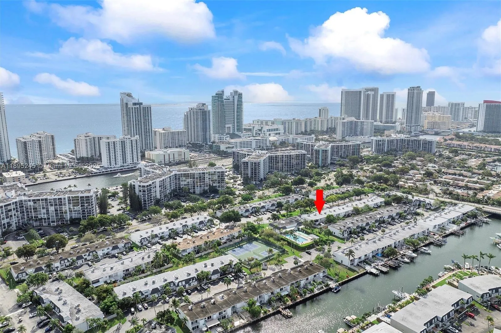 Cozy Two-Story 2 beds 2.5 baths Townhome, at Venetian Park in Three Islands. The lower level, host the living room, dining room, powder room and kitchen- family room combination, perfect for entertaining family and guests, with direct access to the patio. The second level is a two-suite retreat, the main bedroom well situated for privacy, with its own spacious shower bath, large walk-in closet and a private balcony overlooking the patio, the perfect spot for coffee and relaxation. Second bedroom-suite has its own private bath, and two large walk-in closets. TAKE LIFE EASY! No lawn care here! The community offers pool and tennis courts. Stroll to park, playground, shopping centers, restaurants, and beach. Celebrate life in this park-setting established neighborhood.