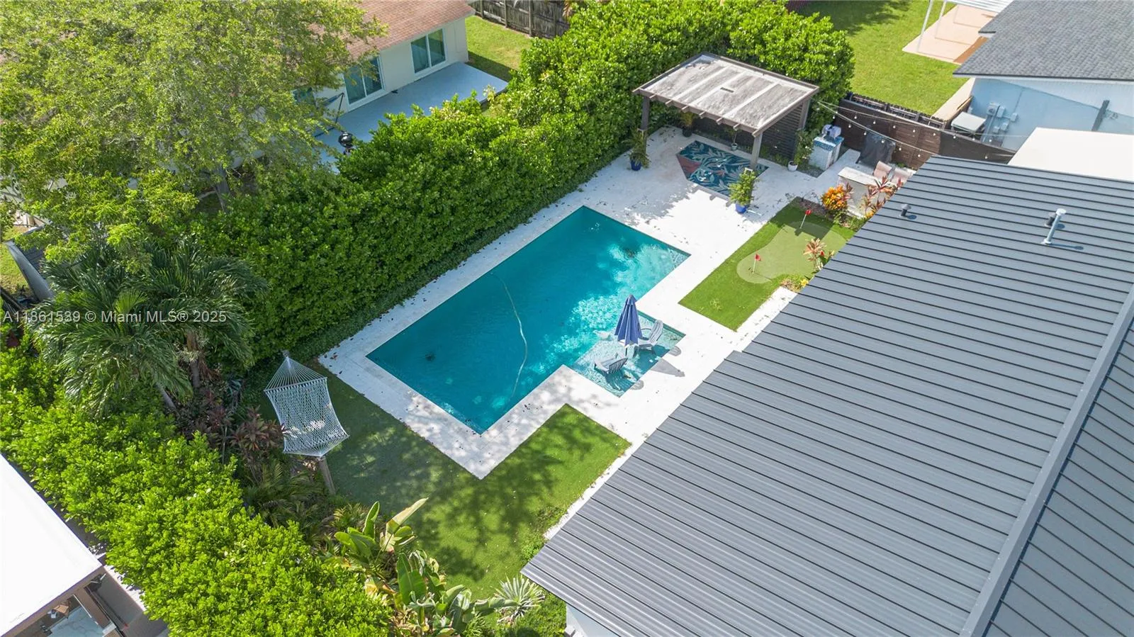 Beautifully remodeled 4-bedroom, 2-bath single-family home in desirable Winston Park. This charming residence features a fully updated pool (2020), a brand-new metal roof, new A/C system, and impact glass windows and doors throughout. The outdoor space is enhanced with artificial grass for low maintenance and year-round enjoyment. Inside, stylish finishes and modern upgrades complement the spacious layout, offering comfort and convenience. Additional highlights include a newly built bungalow, adding flexibility for guests or entertainment. Truly move-in ready!