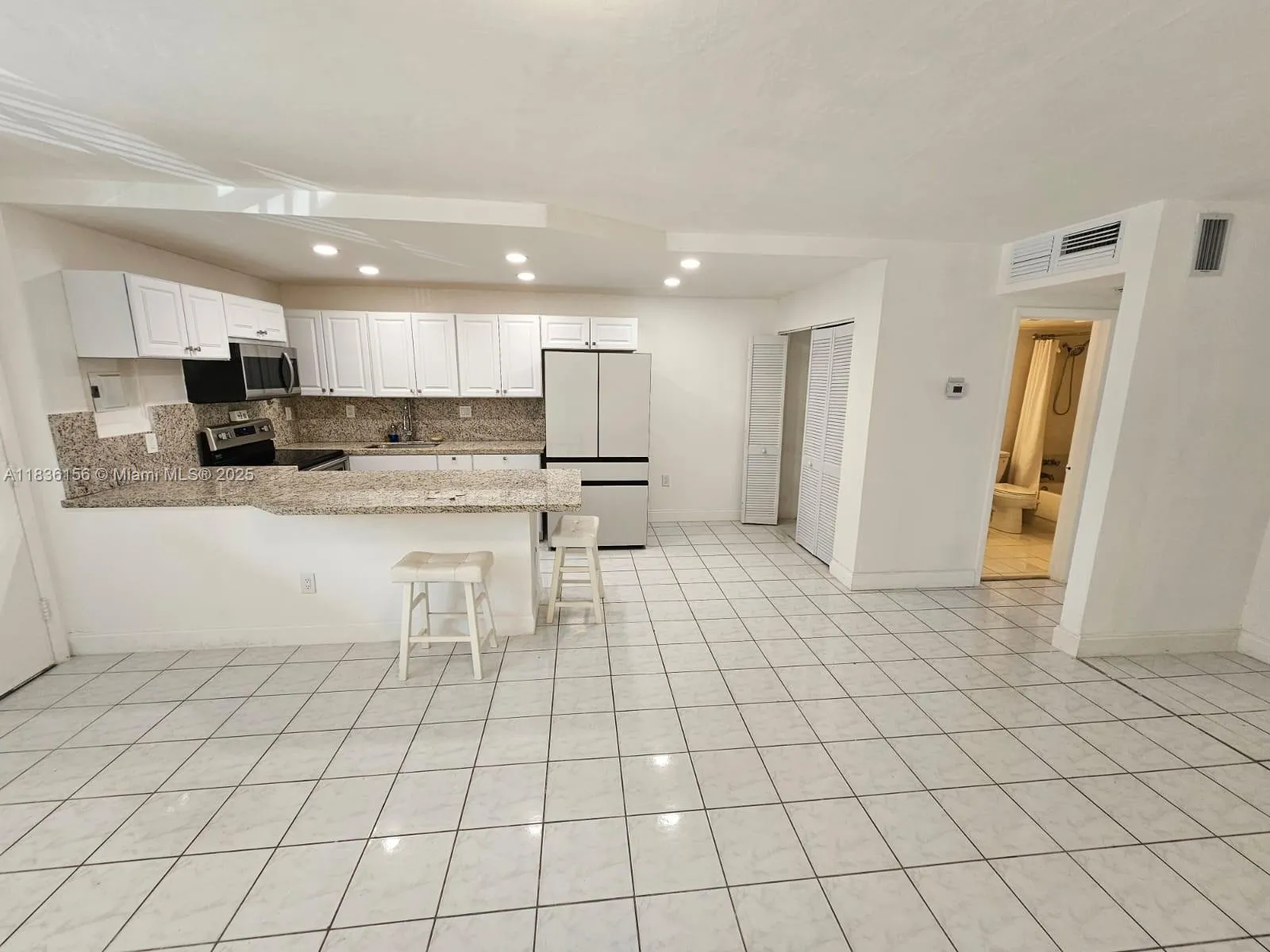 Spacious, large and cozy 1BD/1BA unit on the first floor with approx. 617 SF of open living space. The open-concept layout includes a large kitchen with granite eat-in island, brand-new high-end appliances, ample cabinet space, and a large pantry. The generous living and dining area provides great flexibility. The bedroom is bright and spacious, overlooks the pool area, and includes a walk-in closet. Unit comes with an uncovered parking space located directly in front of the entrance, a private storage unit on the second floor, and access to an on-site laundry facility with plenty of machines. The building also offers plenty of guest parking. Conveniently located with easy access to Biscayne Blvd and I-95, just minutes from Bay Harbor Islands, North Beach, and surrounding areas.
