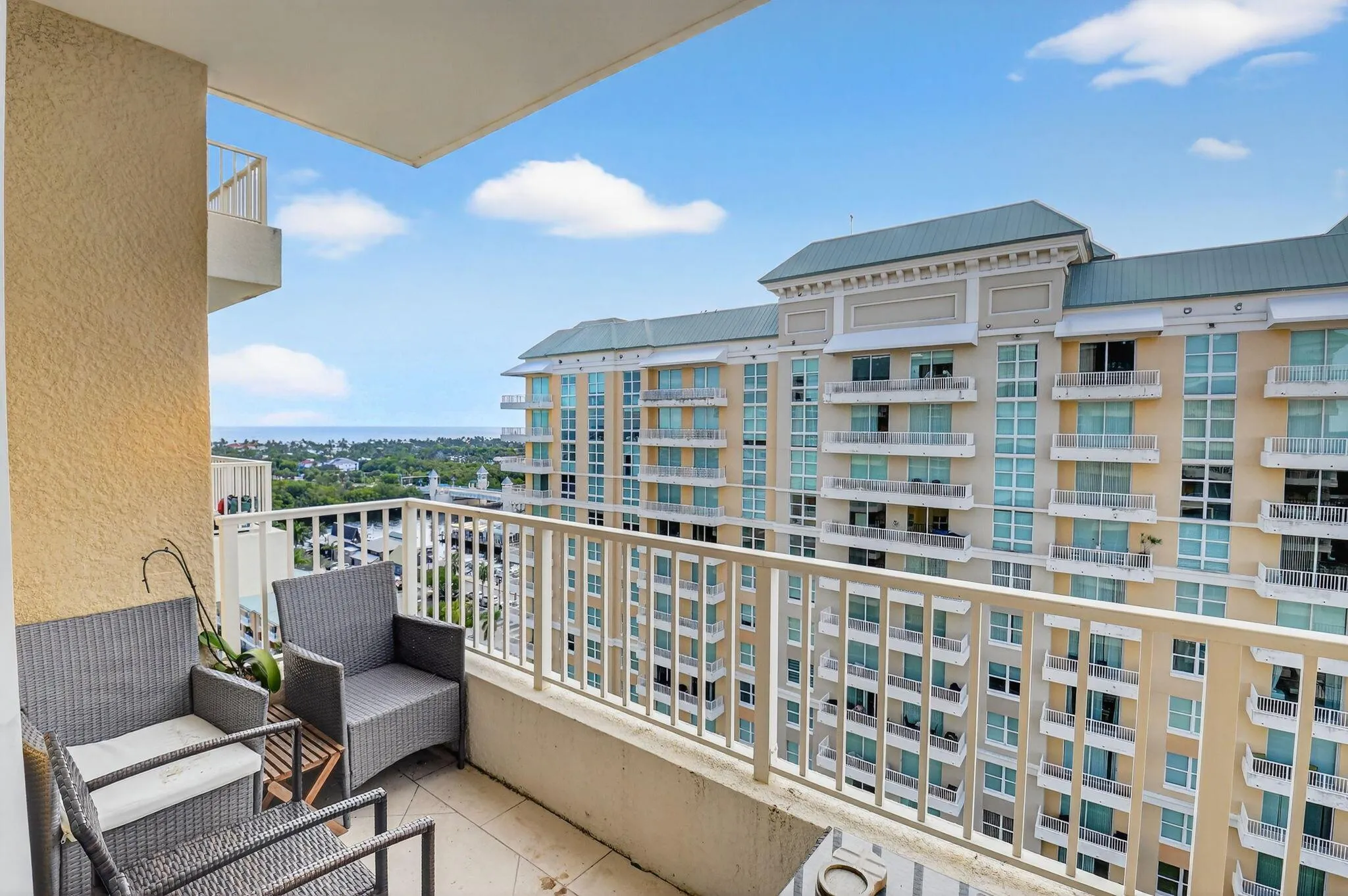 Furnished 1/1 lower Penthouse with ocean, intracoastal and pool views available for annual lease, in the resort style community of Marina Village in Boynton Beach. Boasting 10 foot ceilings and a floor to ceiling window in the master bedroom, the southern exposure offers a light and bright condo , not to be missed. Rent includes wifi, cable tv, water and security. . Amenities include a fitness center, resort style pool and spa, sauna, billiard room, movie theater, business center and club room. Within walking distance to beautiful beaches and several restaurants. Close to I95 and Atlantic Ave.
