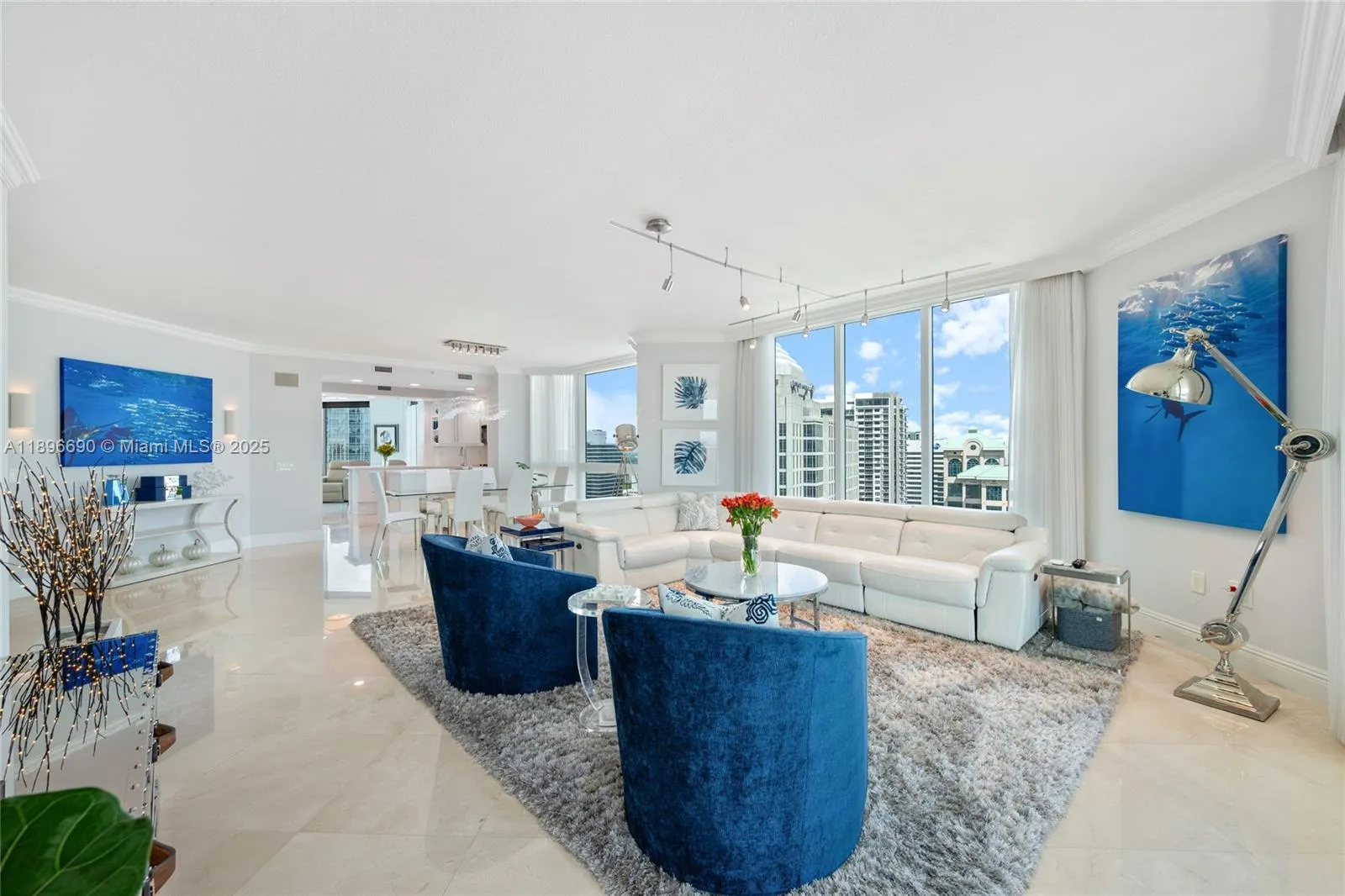 Castle in the Sky / Las Olas Grand Rarely available turnkey 3-bedroom, 3.5 bath residence perched on the 27th floor of the prestigious Las Olas Grand. This impeccably furnished sky-high sanctuary offers sweeping direct views of the river and is just steps away from premier dining, shopping, and the vibrant Las Olas lifestyle. This Ashley designed with pristine attention to detail, the home features a modern, sophisticated aesthetic with exceptional finishes throughout. The open lay is flooded with natural light, accentuating the clean lines and luxurious textures that define its contemporary flair. Whether you’re entertaining guests or enjoying quiet moments above the city, this residence delivers elegance, comfort, and unparalleled location in equal measure.
