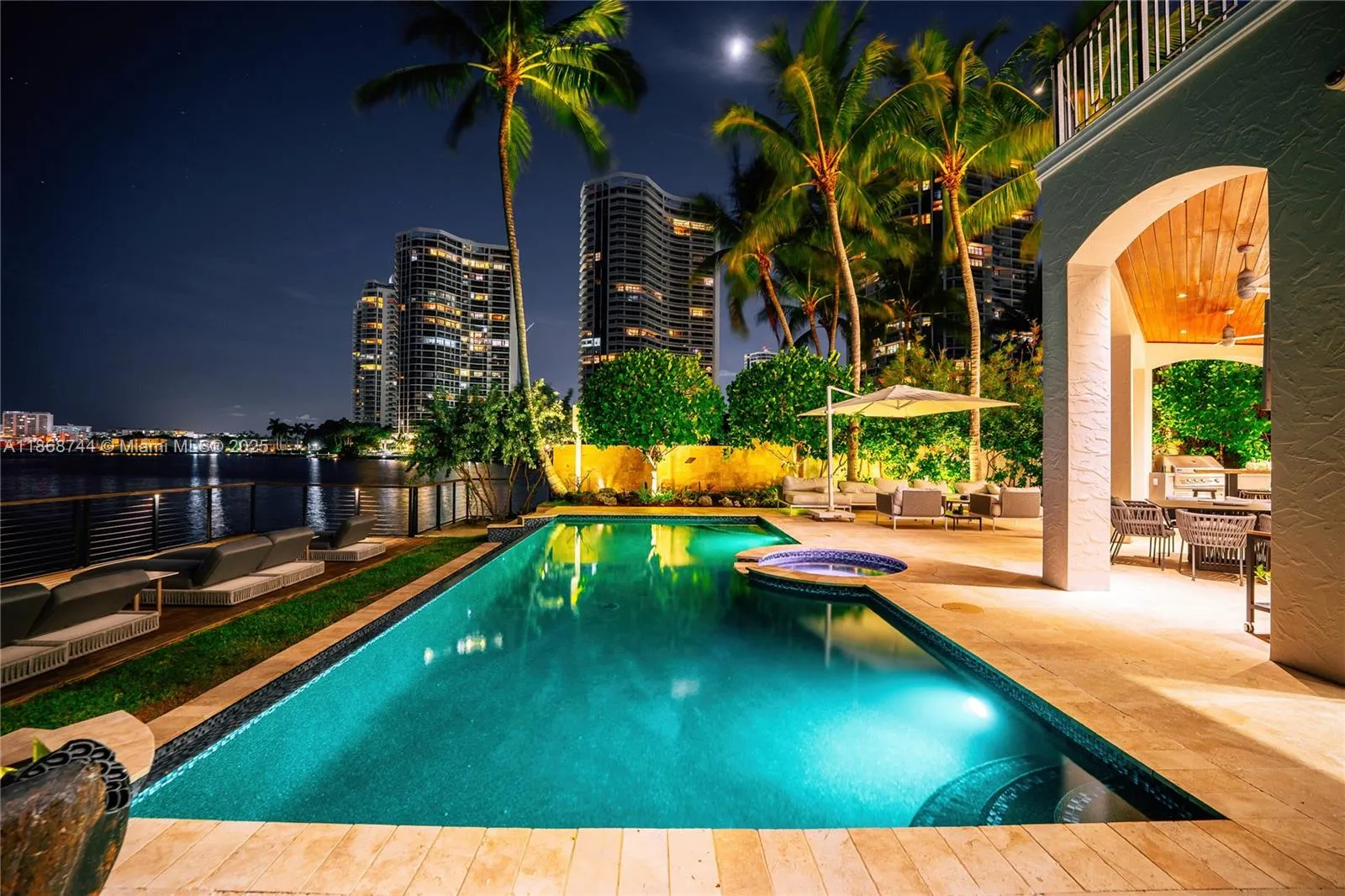 Turnkey waterfront estate in exclusive private island community of Island Estates, Aventura. 6BR + staff residence fully furnished with Italian designer furniture, luxury décor, curated art and sculptures. Dramatic double-height ceilings, expansive glass, chef’s kitchen, formal dining, and elegant entertaining areas. Outdoor resort lifestyle with heated pool, Jacuzzi, summer kitchen, and lush landscaping overlooking the Intracoastal. Optional dock, 50ft or 120ft, with direct Haulover Inlet access. Lease includes weekly housekeeping, pool & garden service, high-speed internet, cable, and house manager. Residents enjoy 24/7 security and world-class amenities: two pro gyms, spa, restaurant, lounges, business center, and more. Available Oct 2025, minimum lease 6 months.