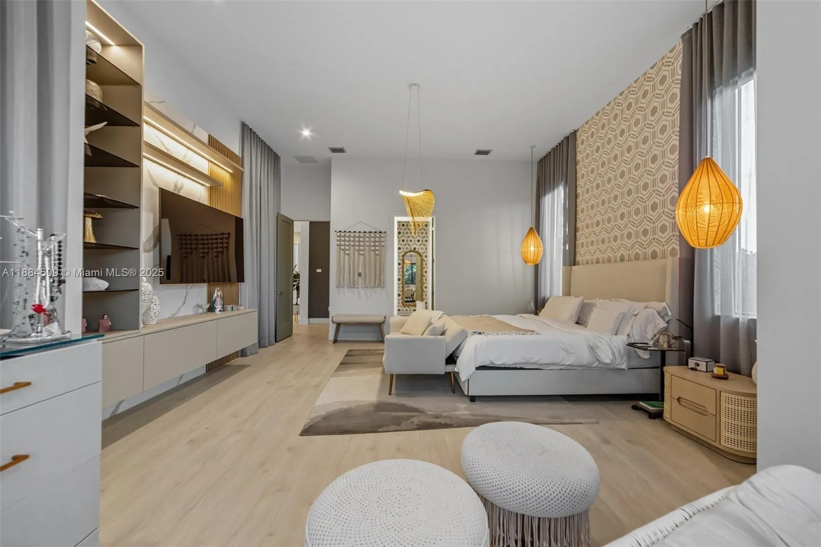 Welcome to this stunning 2023 Turn Key!! residence in the heart of Southwest Ranches. Nestled on a private acre lot, this modern estate offers 3,700+ sq. ft. of living space with high ceilings, open-concept design, and floor-to-ceiling windows that flood the home with natural light. The gourmet kitchen with Calacatta marble countertops, top-of-the-line appliances + spacious island perfect for entertaining. The home features 4 bedrooms, 4.5 baths, and a luxurious primary suite with spa-style bathroom and walk-in closets. Designed for indoor-outdoor living, it boasts a covered terrace with a fully equipped summer kitchen, a 3-car garage, and plenty of parking space. With its prime location, new construction, and sophisticated finishes, this is a rare opportunity to own a ranch-style retreat