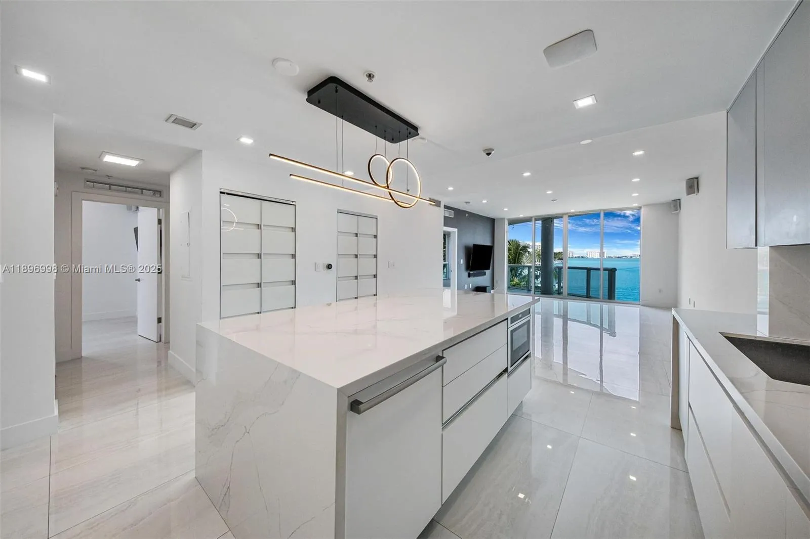 Experience waterfront living in this fully renovated modern masterpiece townhouse at 360 Condominium. Enjoy breathtaking bay views, abundant light, and a spacious private terrace. With private entry, two parking spaces, and sleek finishes—every detail is brand new. This 3BD/2BA residence features full smart-home automation powered by Savant, an open kitchen with designer lighting, electric blinds, and a Thermador wine cooler for hundreds of bottles. The primary suite opens to the terrace with spa bath and walk-in closet, while guest bedrooms offer comfort and style. The 360 community includes a private marina, two pools, gym, and 24-hour security. In-unit washer/dryer included. Unmatched opportunity—nothing like this in North Bay Village, won’t last!