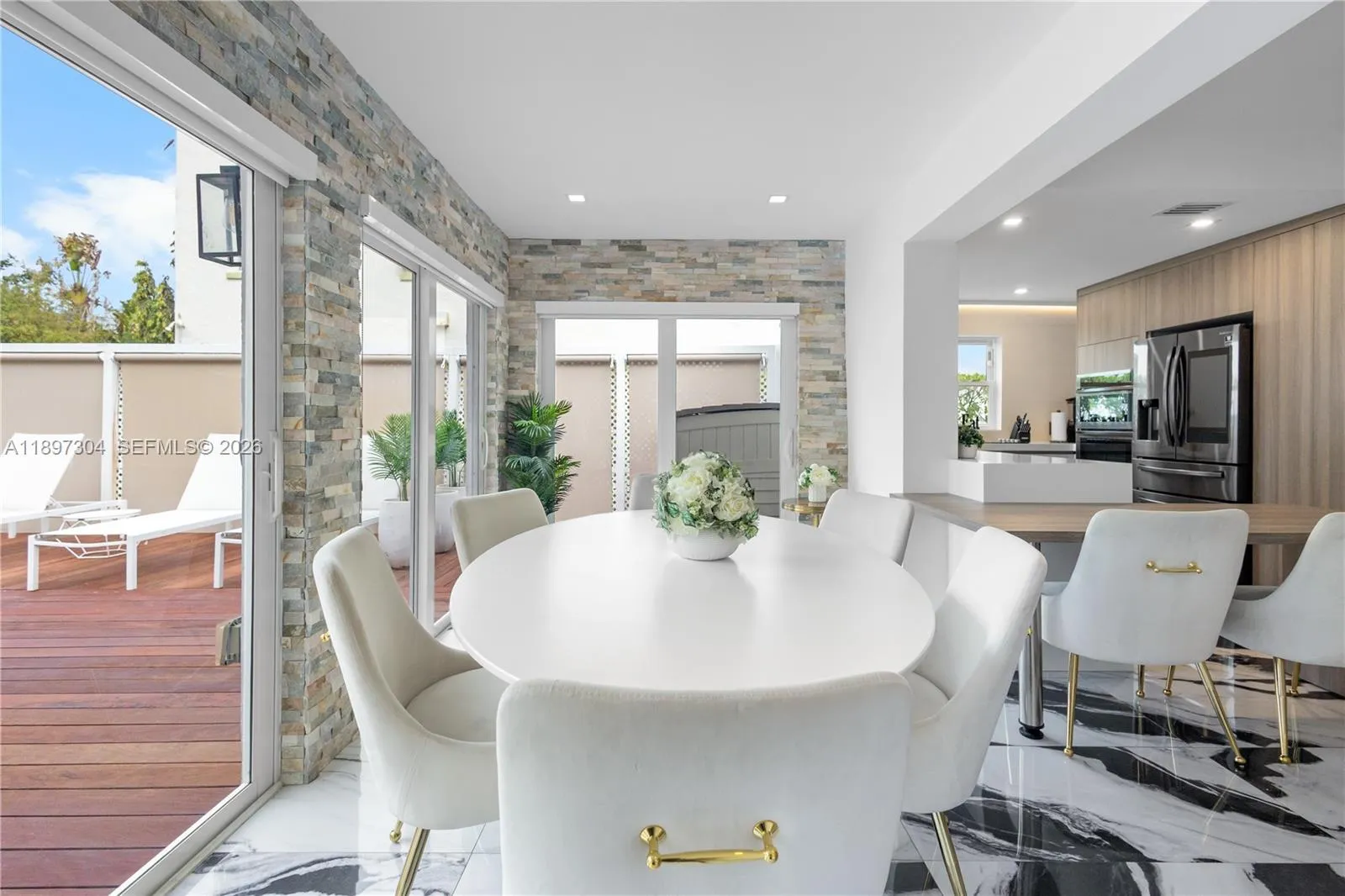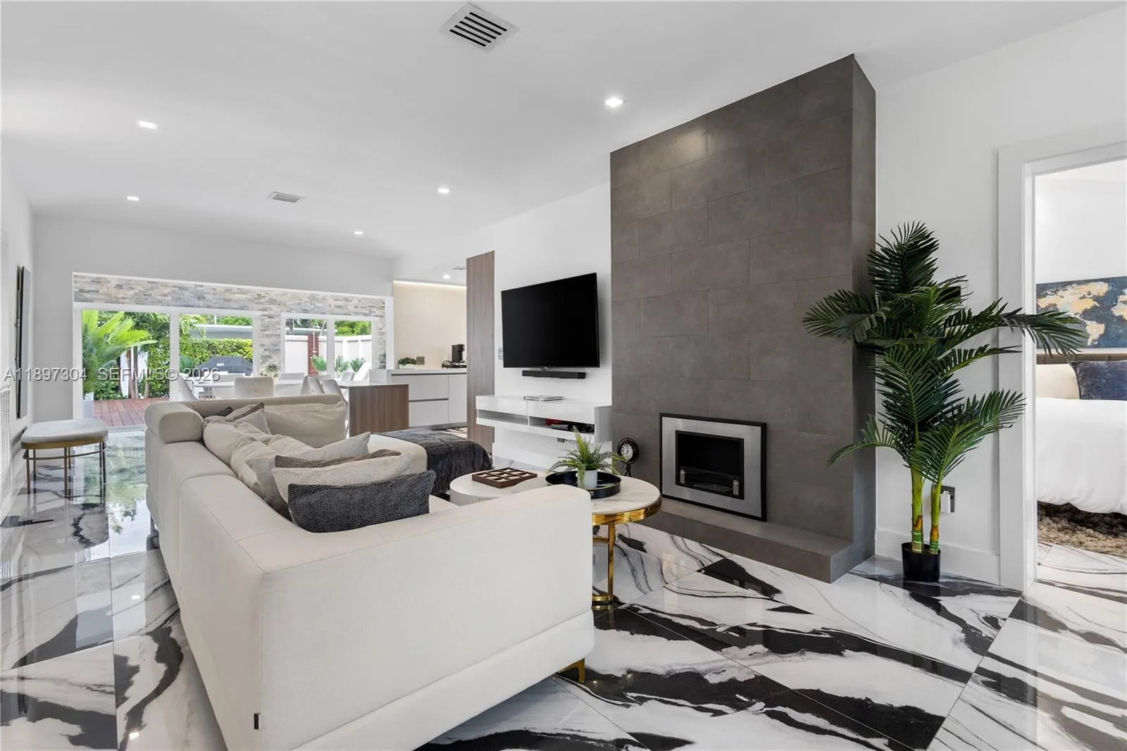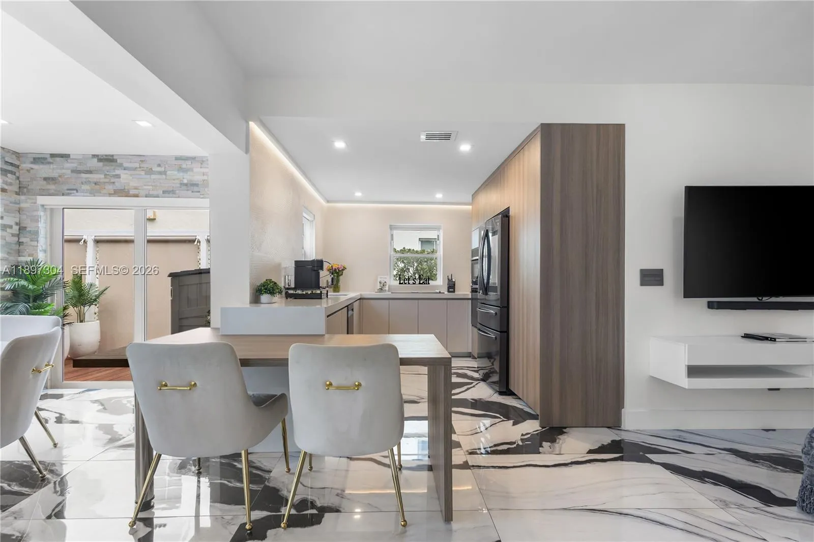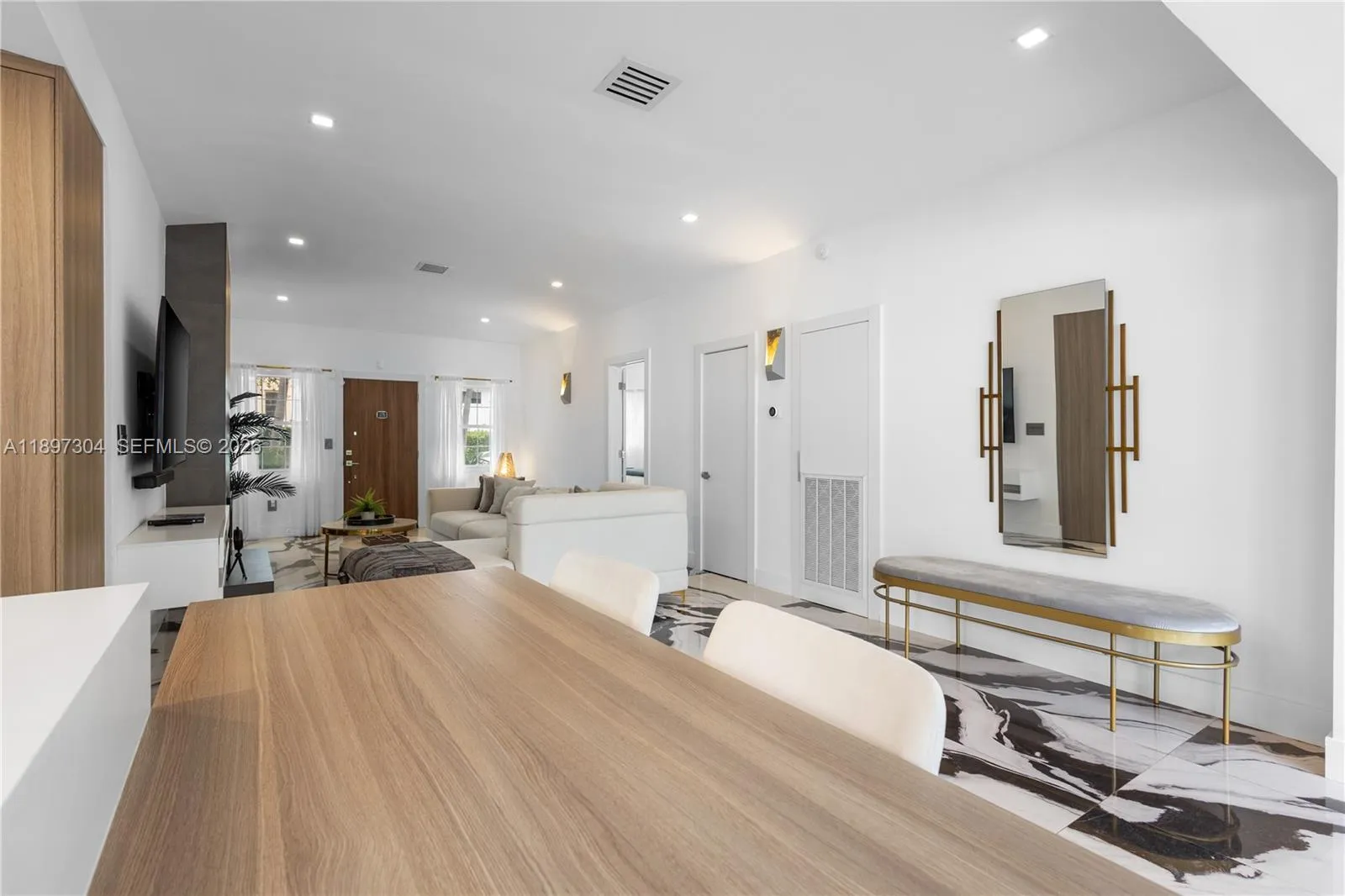 This beautifully remodeled contemporary style, furnished, 3 bedroom, 3.5 bathroom, single family home, boasts high ceilings and an open floor plan with private parking. With oversized impact balcony doors and windows that open up to a spacious private deck with abundant seating. This home has it all, custom built-ins, eat-in kitchen, abundant cabinet storage, stone countertops, high end stainless steel appliances, perfect blend of high style and modern conveniences. Located steps away from Lincoln Road, blocks away from great shops and the beach.
