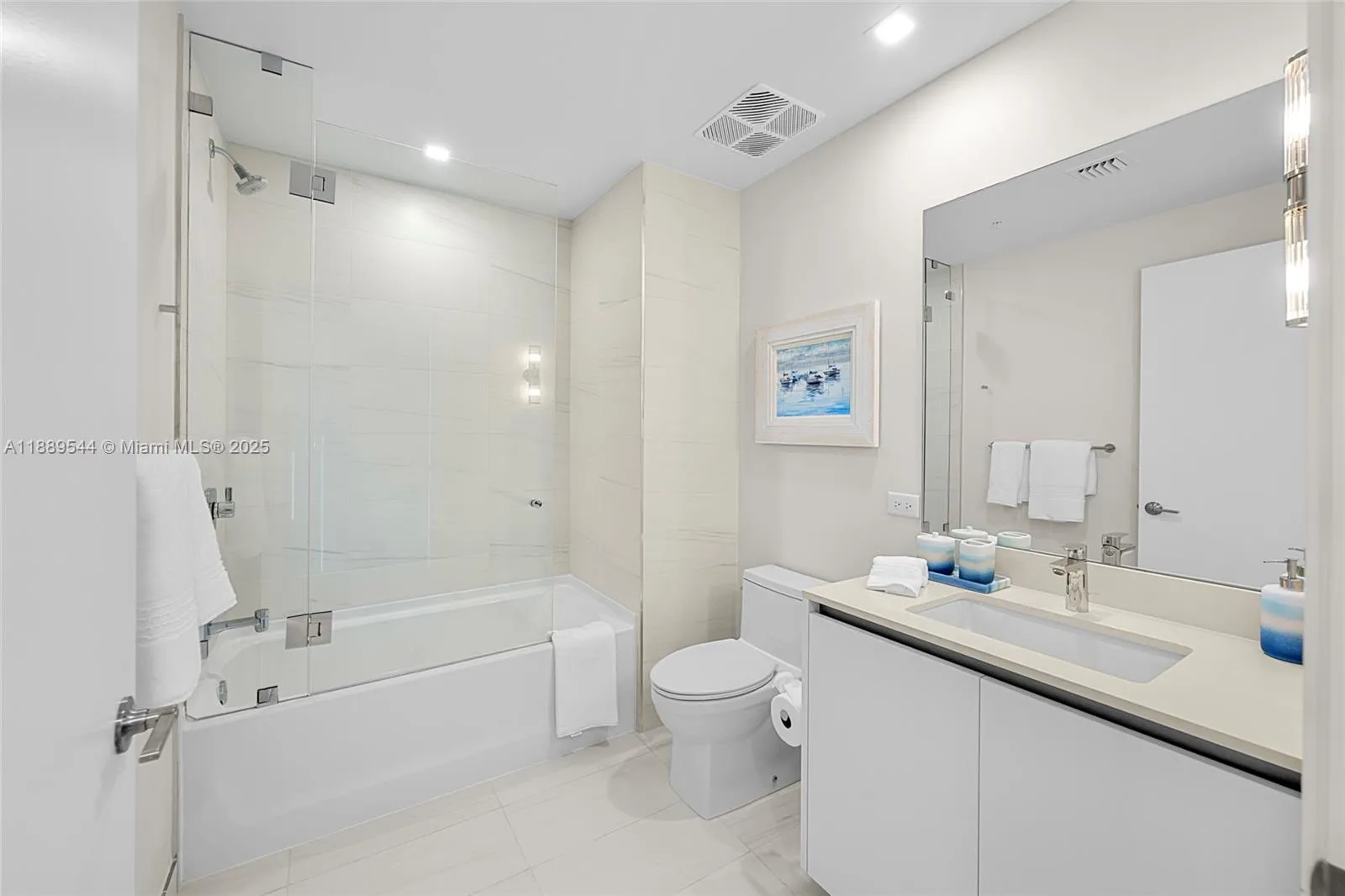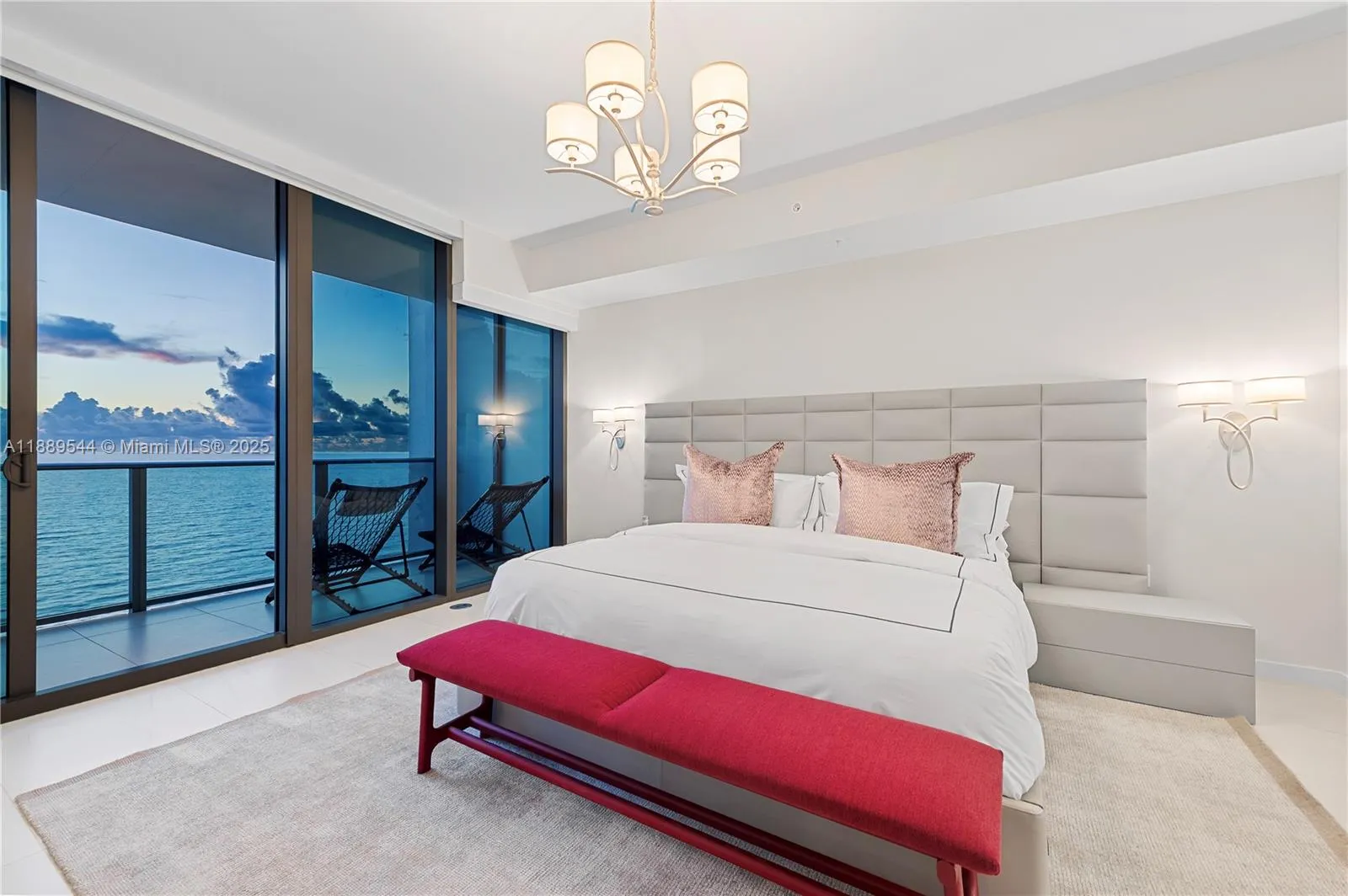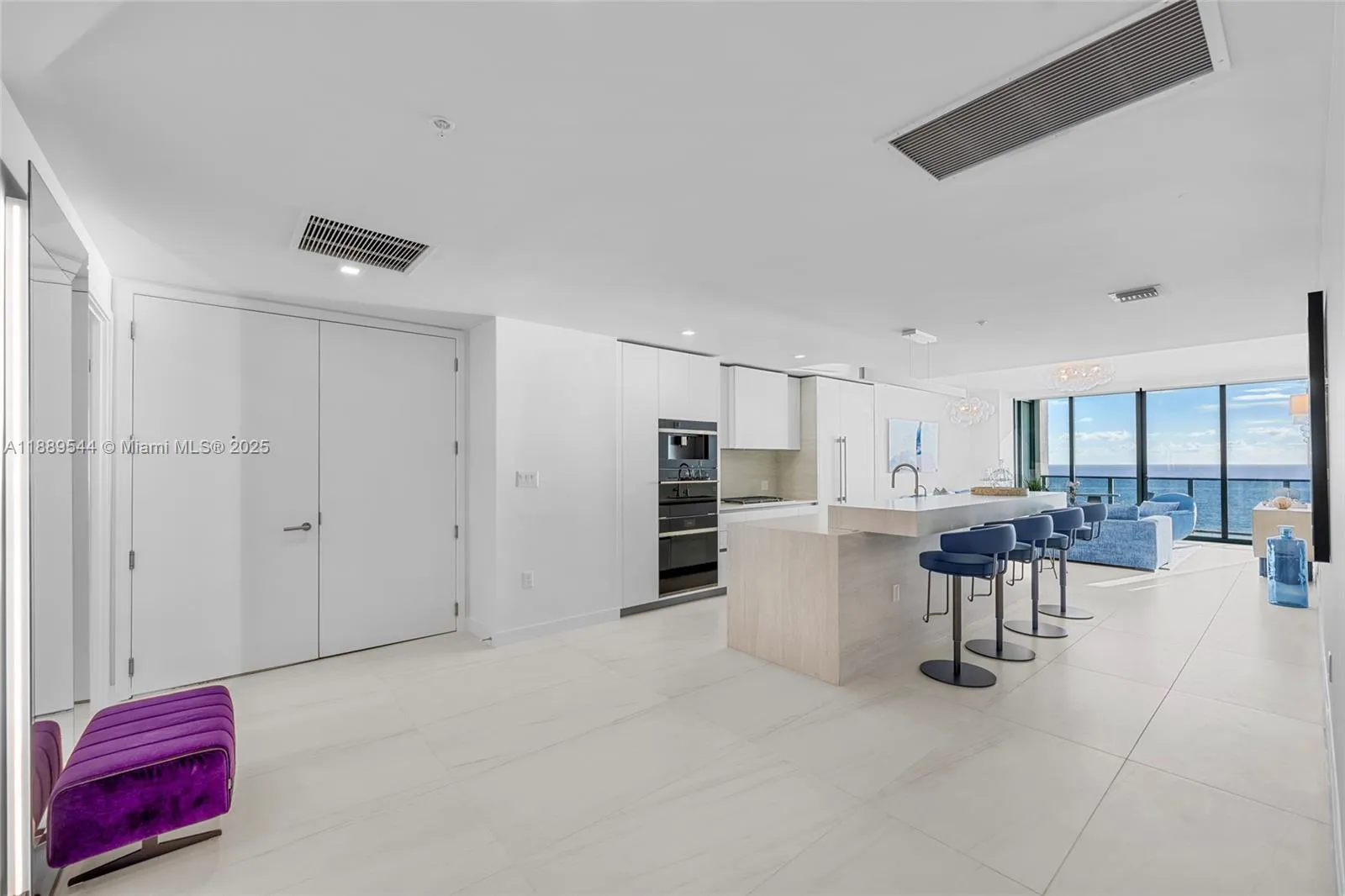 Elevated oceanfront living directly on the sand. Casamar is Related Group’s newest luxury property.Professionally designed with high-end European furniture (Roche Bobois, Cattelan Italia, Pianca), this 3 bedroom plus den/media room can sleep 8 people, features floor-to-ceiling windows with spectacular views You will enjoy spectacular sunrise and sunset views from your bedrooms & living room. Oversized East and West terraces with continuous glass railings. Private elevator access and entry foyer. Kitchen designed with Italian cabinetry, countertops, Sub-Zero/Wolf appliances and integrated espresso/cappuccino system. Sunrise and sunset swimming pools, golf simulator room, 24/7 Valet Parking and on-premises security. Available for a 6-month or annual lease w/renewal option.