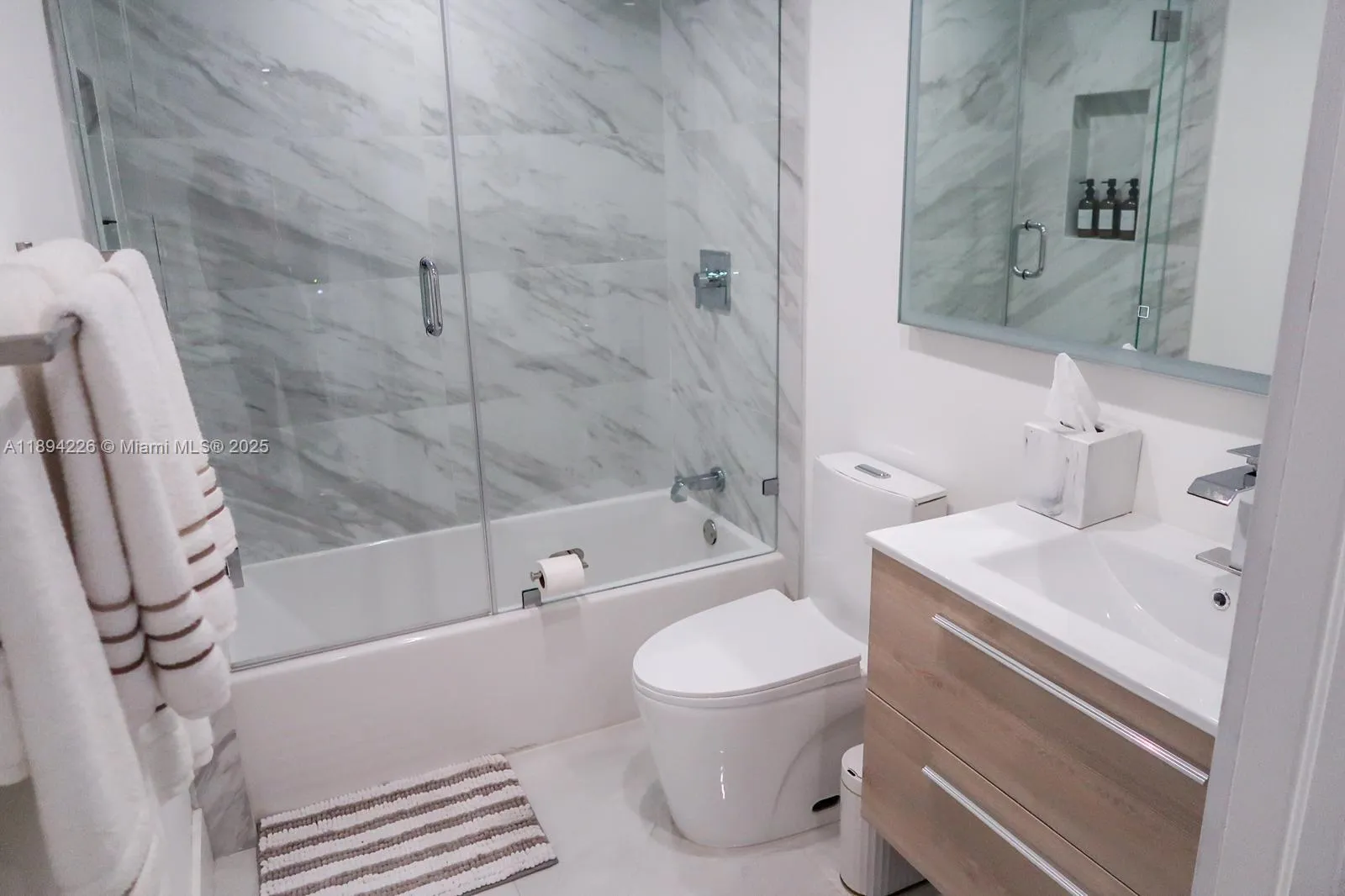 Step into this beautifully remodeled 3-bedroom, 2-bath apartment featuring white porcelain floors, a sleek modern kitchen with elegant stone style countertops, and stainless steel appliances. The spacious open layout includes two walk-in closets, remodeled bathrooms, and generous storage throughout — perfect for both comfort and style. Located in a well-maintained community with access to a sparkling pool and a children’s playground, this apartment offers the ideal blend of luxury and livability in one of Doral’s most desirable neighborhoods.