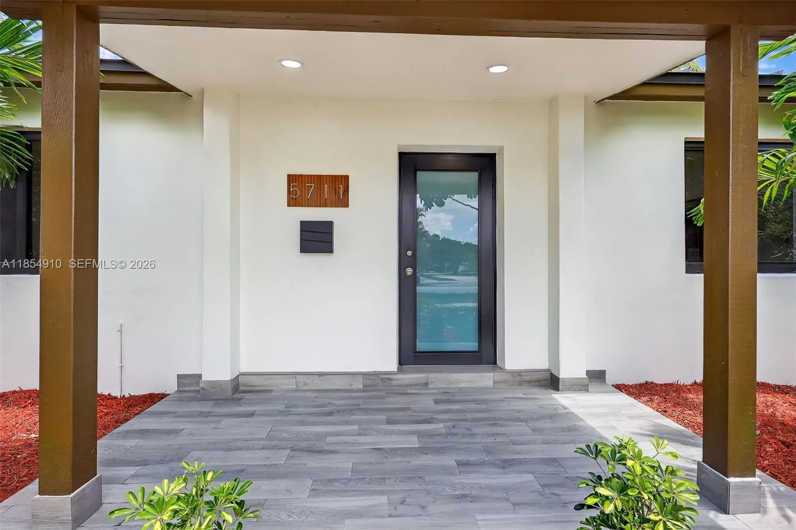This stunning home is truly turnkey. Beautiful kitchen and bathrooms. Kitchen highlights built-in wine cooler, spacious pantry, accent wall with open shelves, custom made kitchen cabinets, quartz counter tops and stainless-steel appliances. Bathrooms nicely decorated with contemporary cabinets and hardware. Uniform slate grey tile throughout the house. Convenient split bedroom layout. Separate laundry room. New Metal Roof 2025. All impact windows and doors. The spacious backyard has plenty of room for a pool and lounge furniture. Fenced in backyard. Bigger than tax roll. Great neighborhood with nearby excellent schools, restaurants and entertainment. Must See!