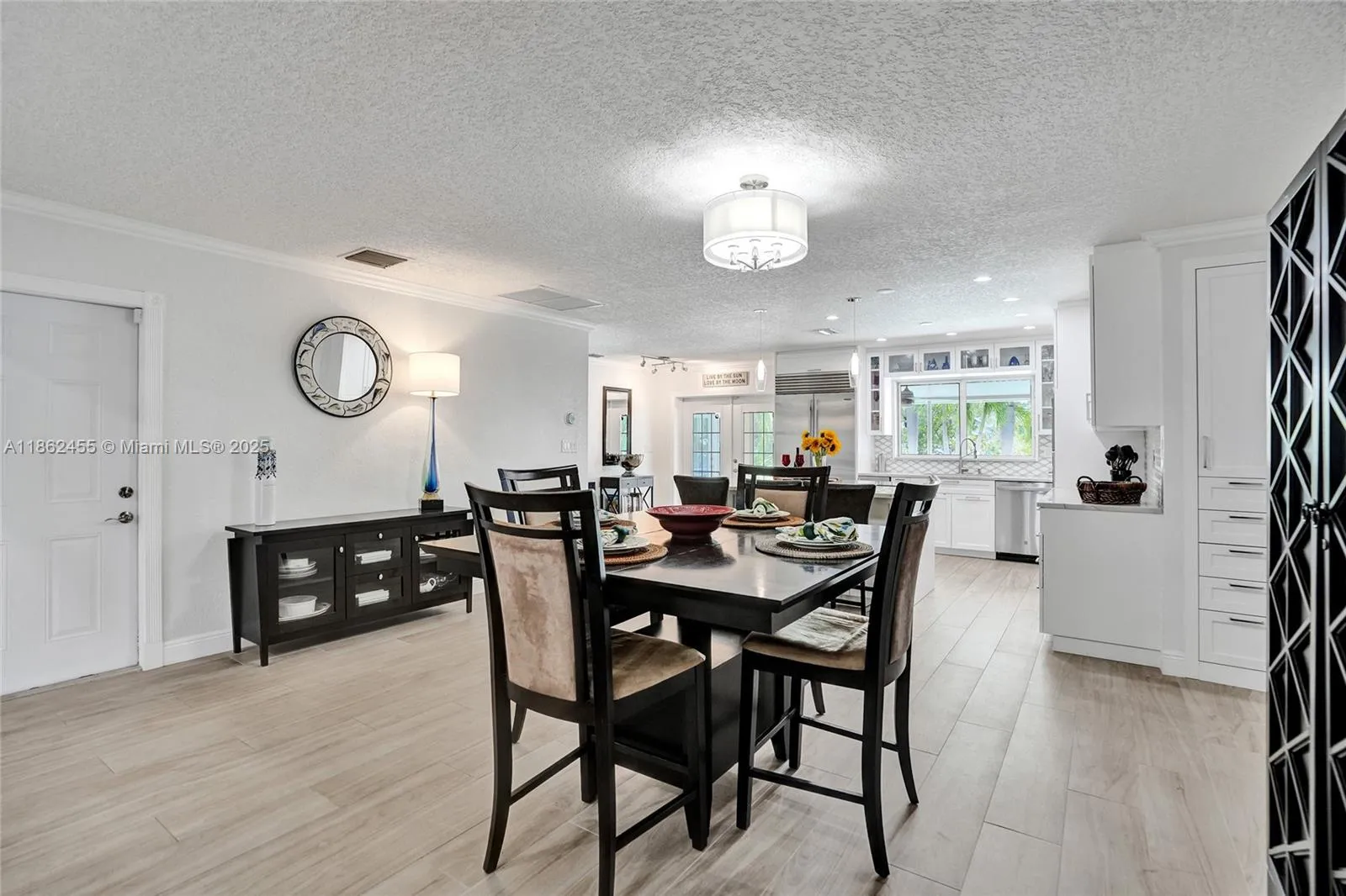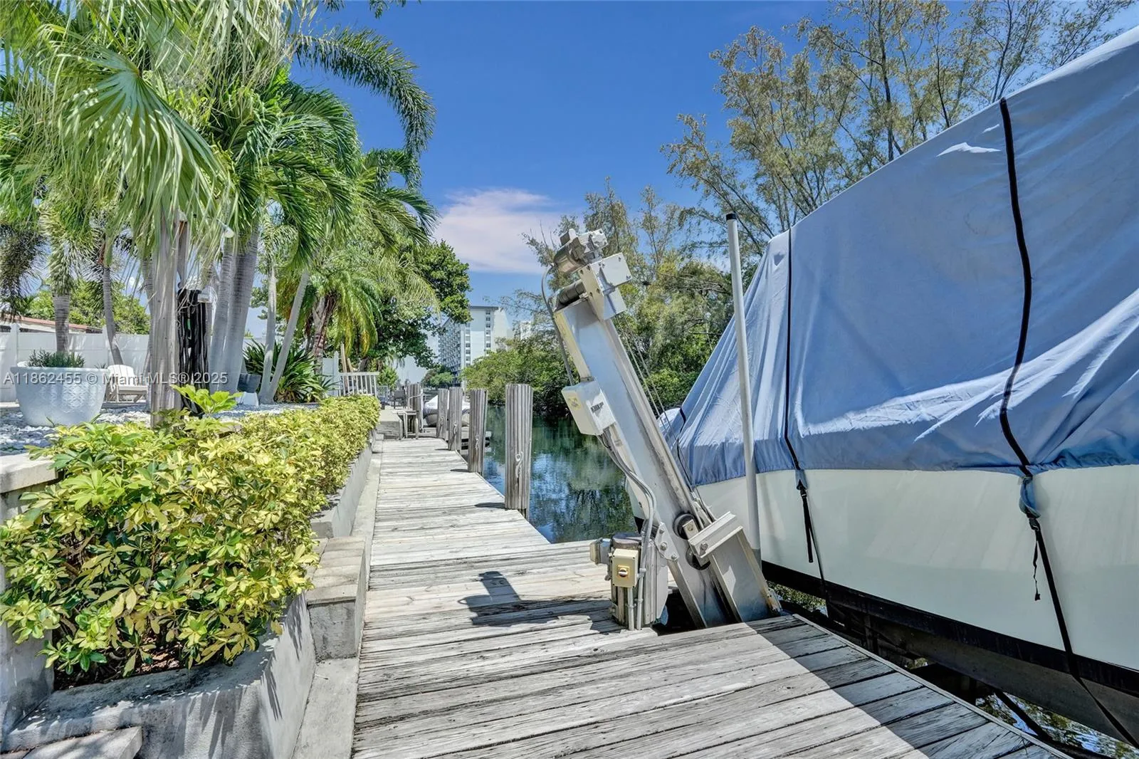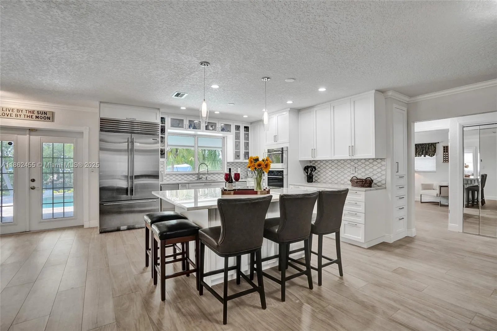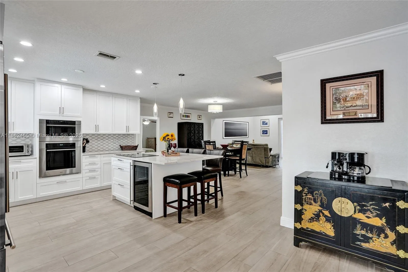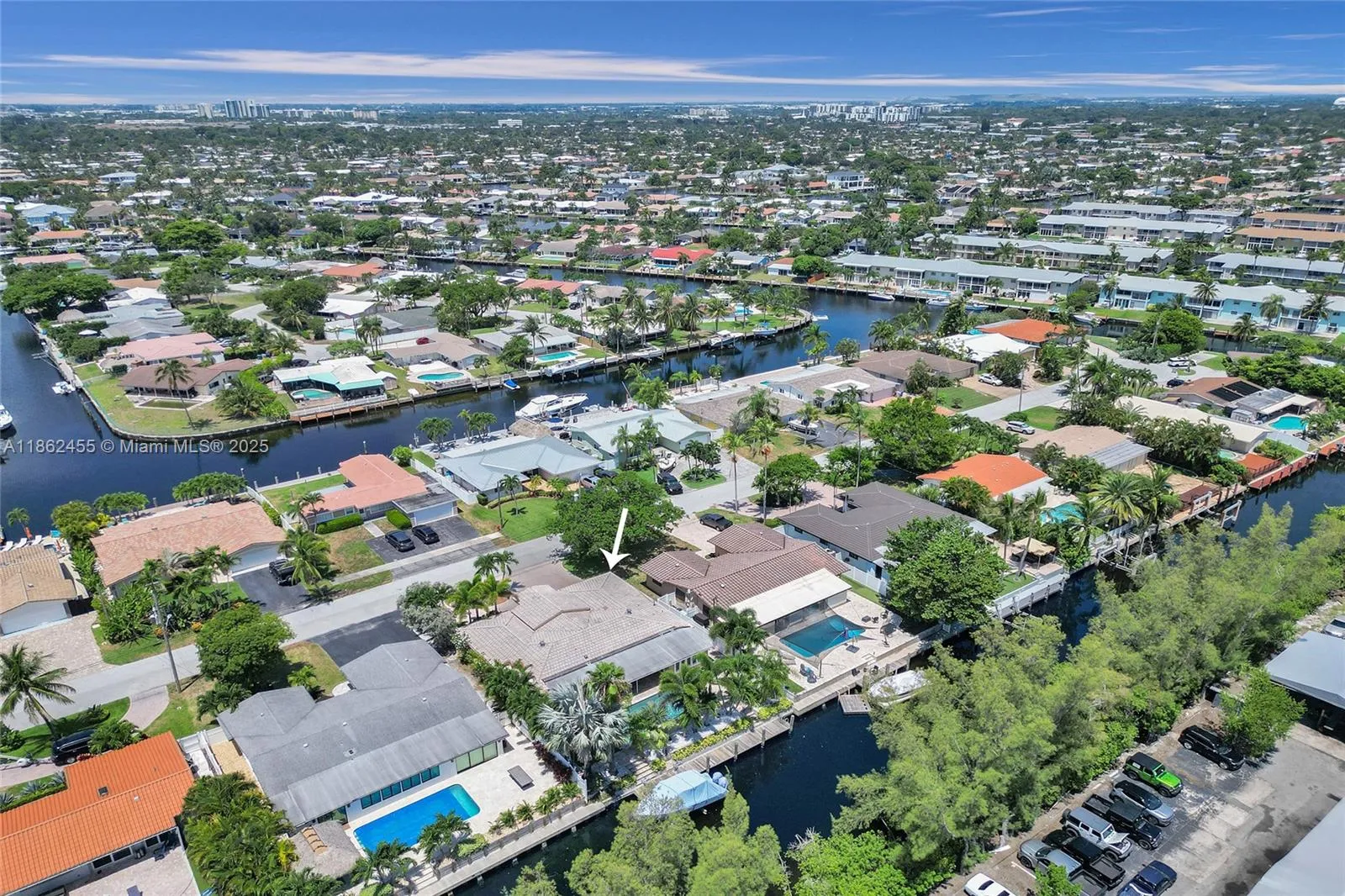 Waterfront Boaters Paradise with only one fixed bridge to the Ocean! Beautifully updated canal-front home features include tile flooring in main areas, vaulted ceilings, knockdown textured walls/ceilings, & crown molding. Chef’s kitchen with Stainless Steel appliances- Sub-Zero fridge, Wolf double oven, microwave/confection, center island, extra icemaker & wine cooler. Spacious bedrooms all with large closets, updated bathrooms including cabana bath for convenience in/out to the pool. Step outside to your backyard Oasis- oversized patio, heated saltwater pool with waterfall, paved deck, custom tiki bar w/ grill, 70’ dock with water, electric, shower & 14,000lb Neptune boat lift, dock rnCircular driveway& Fenced yard, this home is move-in-ready—perfect for year-round waterfront living!