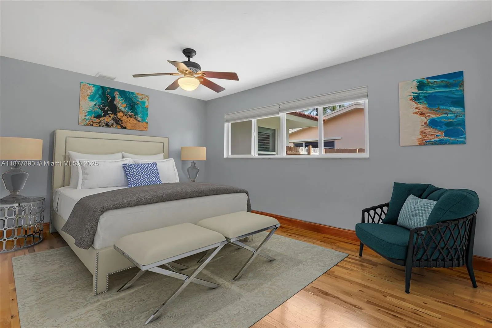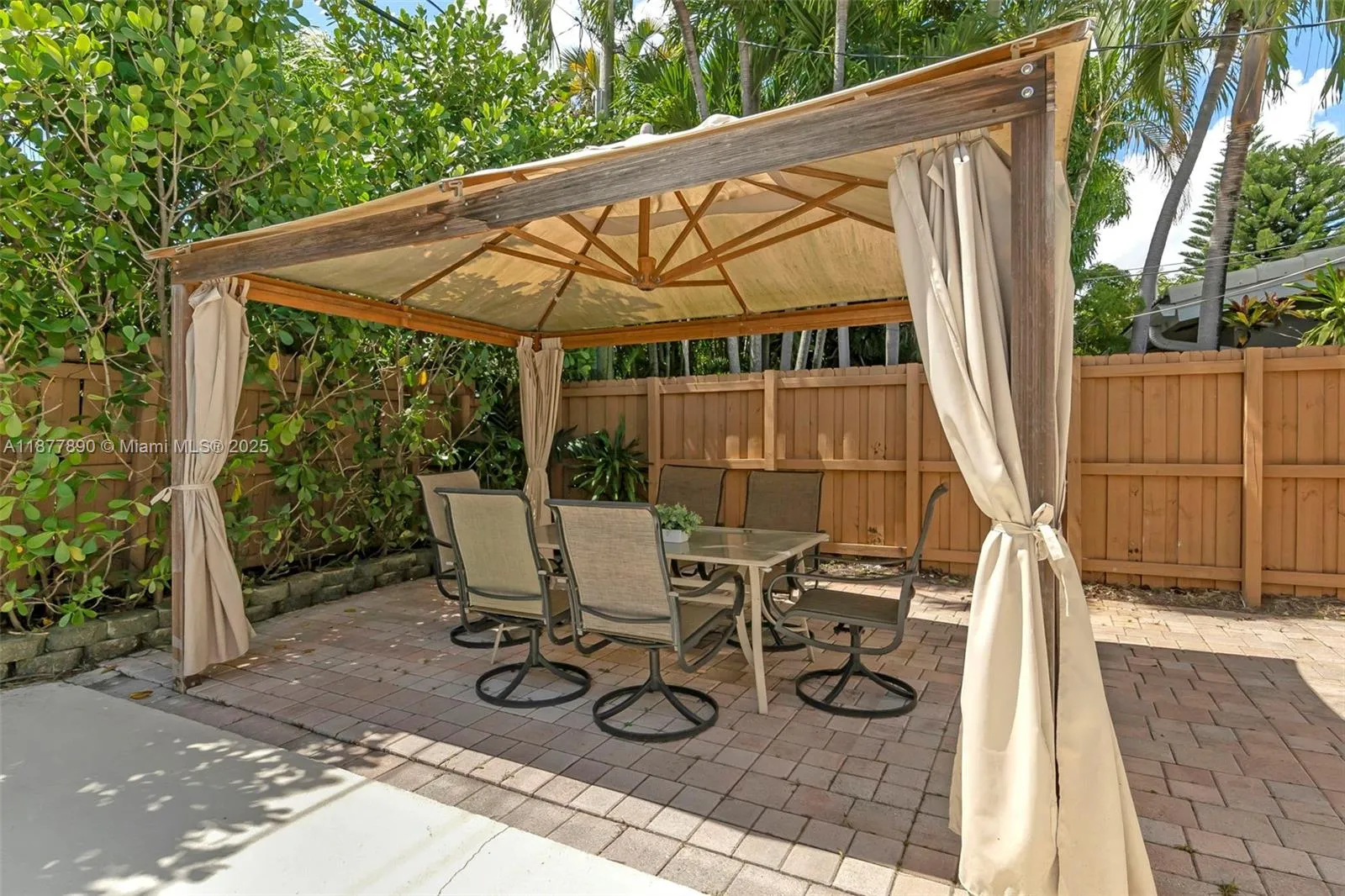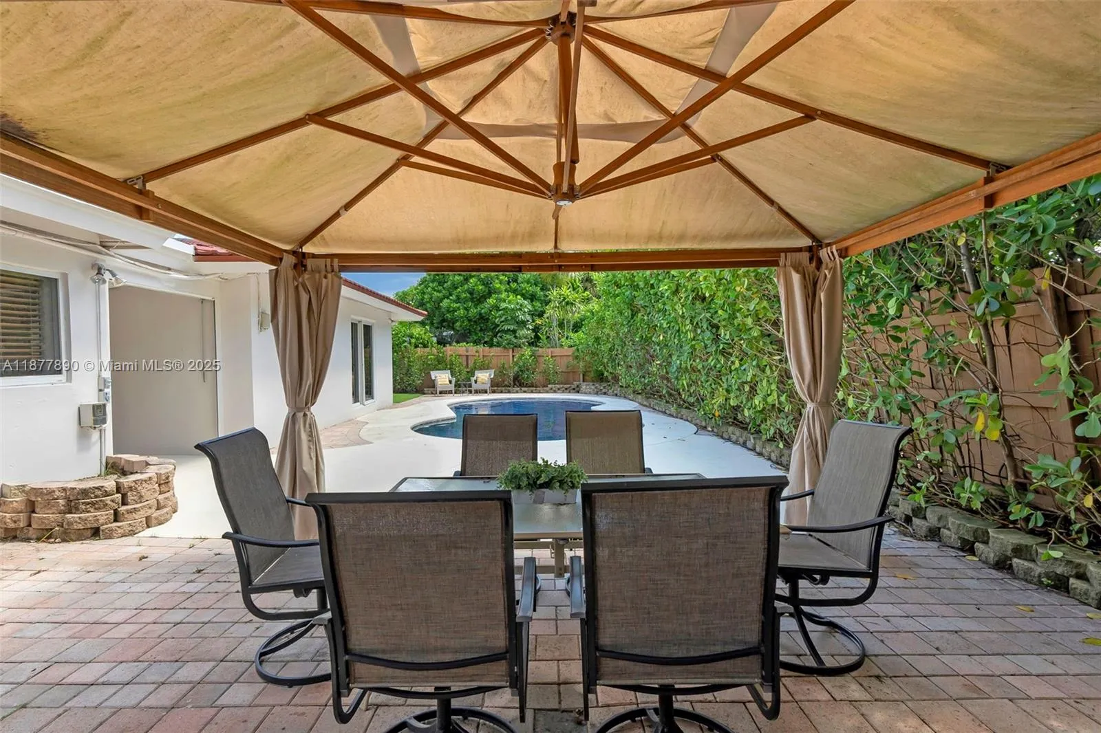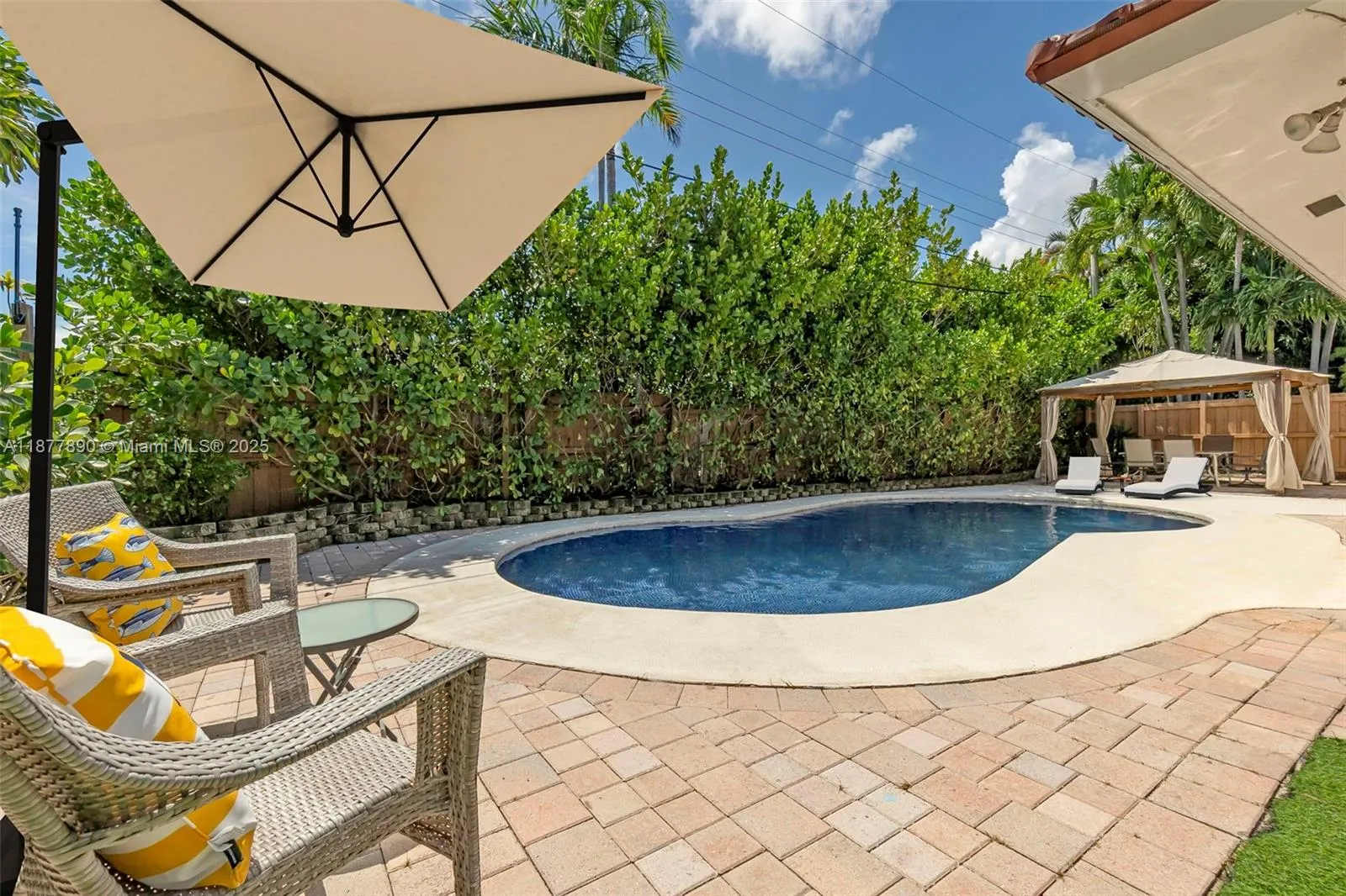 All about LOCATION! This large 3-bedroom (OVER 2000 SQFT), 3-bathroom home features spacious split bedrooms and a large dream kitchen with butler’s pantry. Redwood flooring throughout and an open-concept design create spectacular living space. The large backyard is your private resort featuring a fully tiled, heated saltwater pool and large grassy area with cabana. Recent major updates include new metal roof (2021), new A/C (2020), and $30,000 whole-house gas-piped GENERAC generator. Additional premium features include impact hurricane-rated windows and doors, tankless water heater, 2-zone AC, and fully insulated attic. This move-in ready home combines luxury amenities with energy efficiency and storm protection. Motivated seller has already relocated north. Furniture photoshopped!