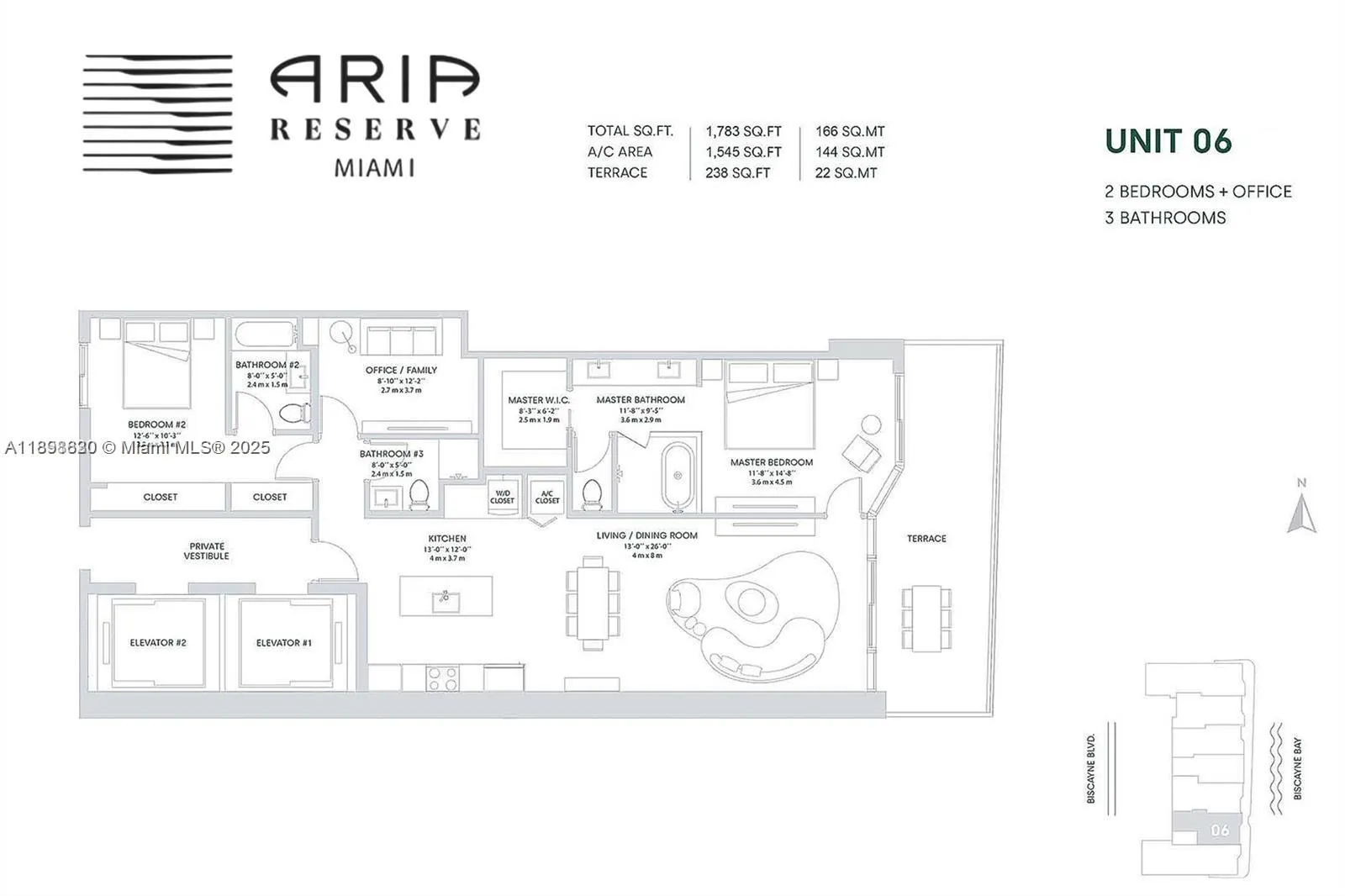 Experience ultra-modern luxury living at its finest! This brand-new, never-lived-in residence at Aria Reserve features 2 bedrooms + den (convertible to a 3rd bedroom) & 3 full baths, showcasing sophisticated design and breathtaking direct water views. Step off your private elevator into a spacious open-concept layout flowing to an oversized balcony overlooking the Intracoastal. Indulge in your spa-inspired primary bath with a freestanding soaking tub and serene views. Aria Reserve offers 2+ acres of resort style amenities—pools, fitness center, tennis, basketball & paddle courts, kids lounges, theater, wine cellar, business center, dog park, spa & more—conveniently located in the heart of Edgewater minutes from fine dining, entertainment, high end shopping, and world famous Miami beach.