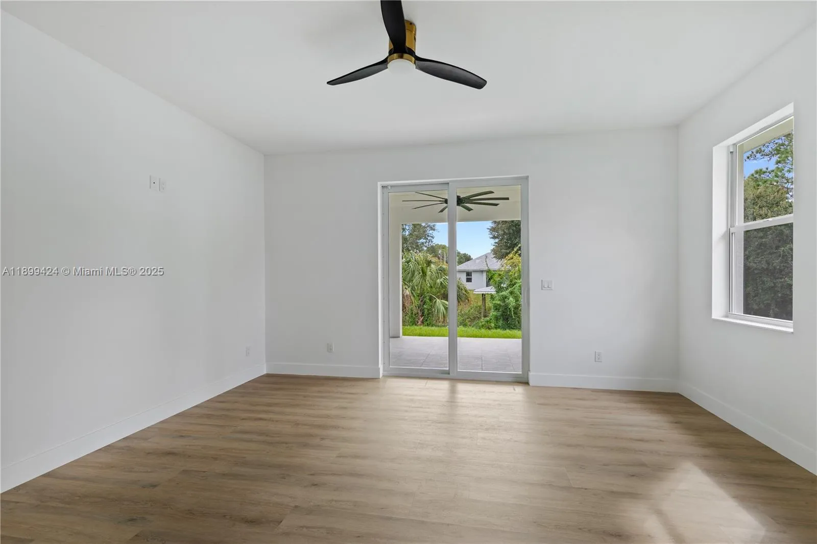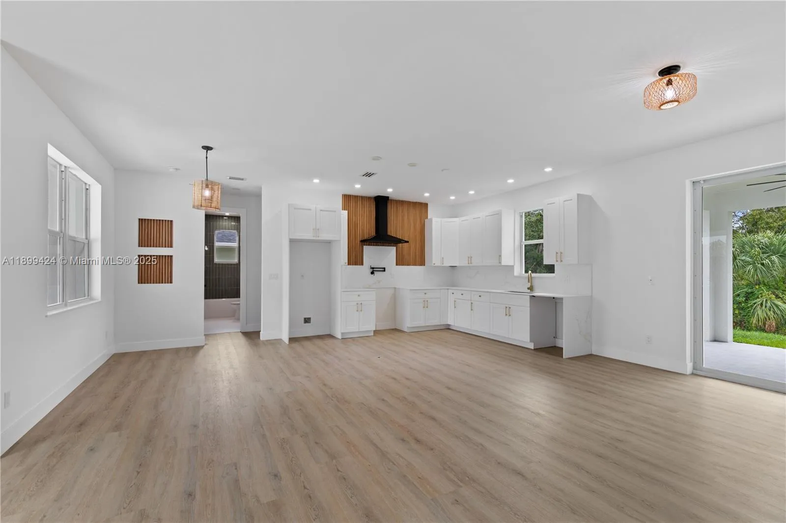 Step inside this stylish 3/2 home & fall in love with its bright, open-concept design-ideal for modern Florida living. The spacious living area features luxury vinyl plank flooring, recessed lighting, & abundant natural light. The sleek kitchen stands out with white shaker cabinets, a dramatic wood accent backsplash, quartz countertops, stainless steel appliances, & a bold black range hood. The primary suite offers a frameless-glass shower with floor-to-ceiling tile & elegant vanity. Highlights include a covered lanai, 2-car garage, side entry, and sliding glass doors for seamless indoor-outdoor living. Built with solid concrete construction this home promises both style & longevity. Close to golf course, private boat ramps, & parks-don’t miss your chance to make this brand-new home yours!
