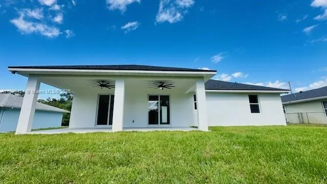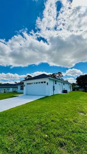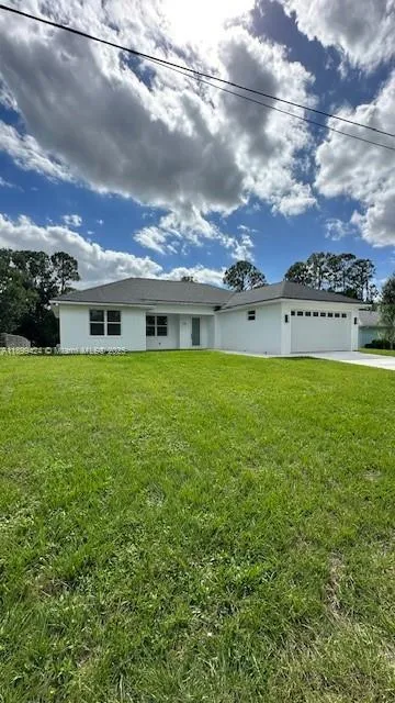 Step inside this stylish 3/2 home & fall in love with its bright, open-concept design-ideal for modern Florida living. The spacious living area features luxury vinyl plank flooring, recessed lighting, & abundant natural light. The sleek kitchen stands out with white shaker cabinets, a dramatic wood accent backsplash, quartz countertops, stainless steel appliances, & a bold black range hood. The primary suite offers a frameless-glass shower with floor-to-ceiling tile & elegant vanity. Highlights include a covered lanai, 2-car garage, side entry, and sliding glass doors for seamless indoor-outdoor living. Built with solid concrete construction this home promises both style & longevity. Close to golf course, private boat ramps, & parks-don’t miss your chance to make this brand-new home yours!