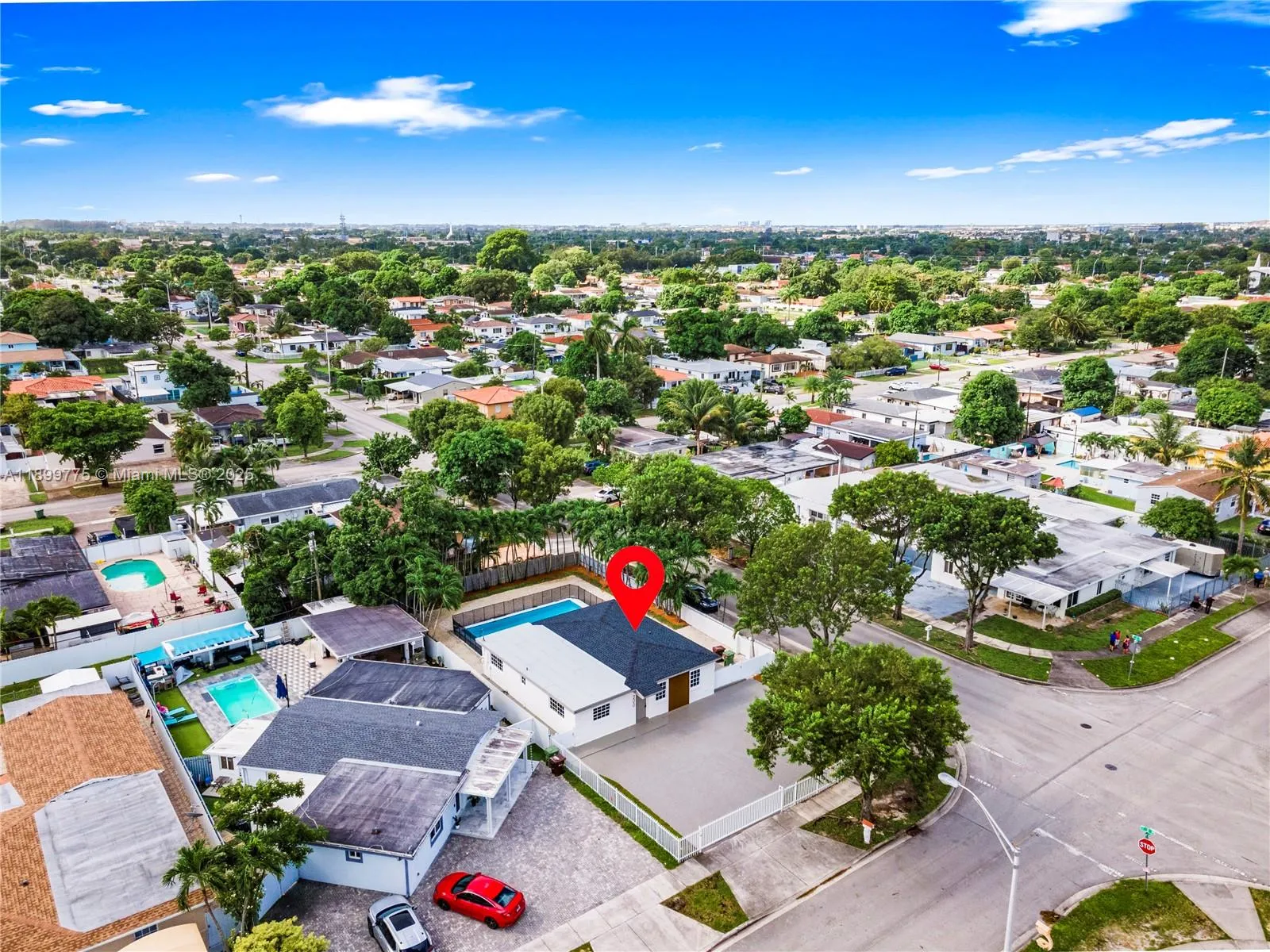 COMPLETELY RENOVATED in 2025, this spacious 4-BEDROOM, 3-BATH, POOL HOME features modern finishes and a flexible open floorplan with TWO EN-SUITE MASTER BEDROOMS, perfect for multi-generational living or guests. Flooded with natural light, it sits on a corner lot with a huge driveway and full fencing for privacy. Enjoy the oversized 16×34 pool, light oakwood floors, and a sleek modern kitchen with built-in pantry. Bathrooms, doors, and millwork are tastefully updated. Major improvements include a BRAND-NEW roof, impact doors, electrical, plumbing, laundry room, and AC system. Centrally located near Amelia Earhart Park, 826, Gratigny, I-95 & more