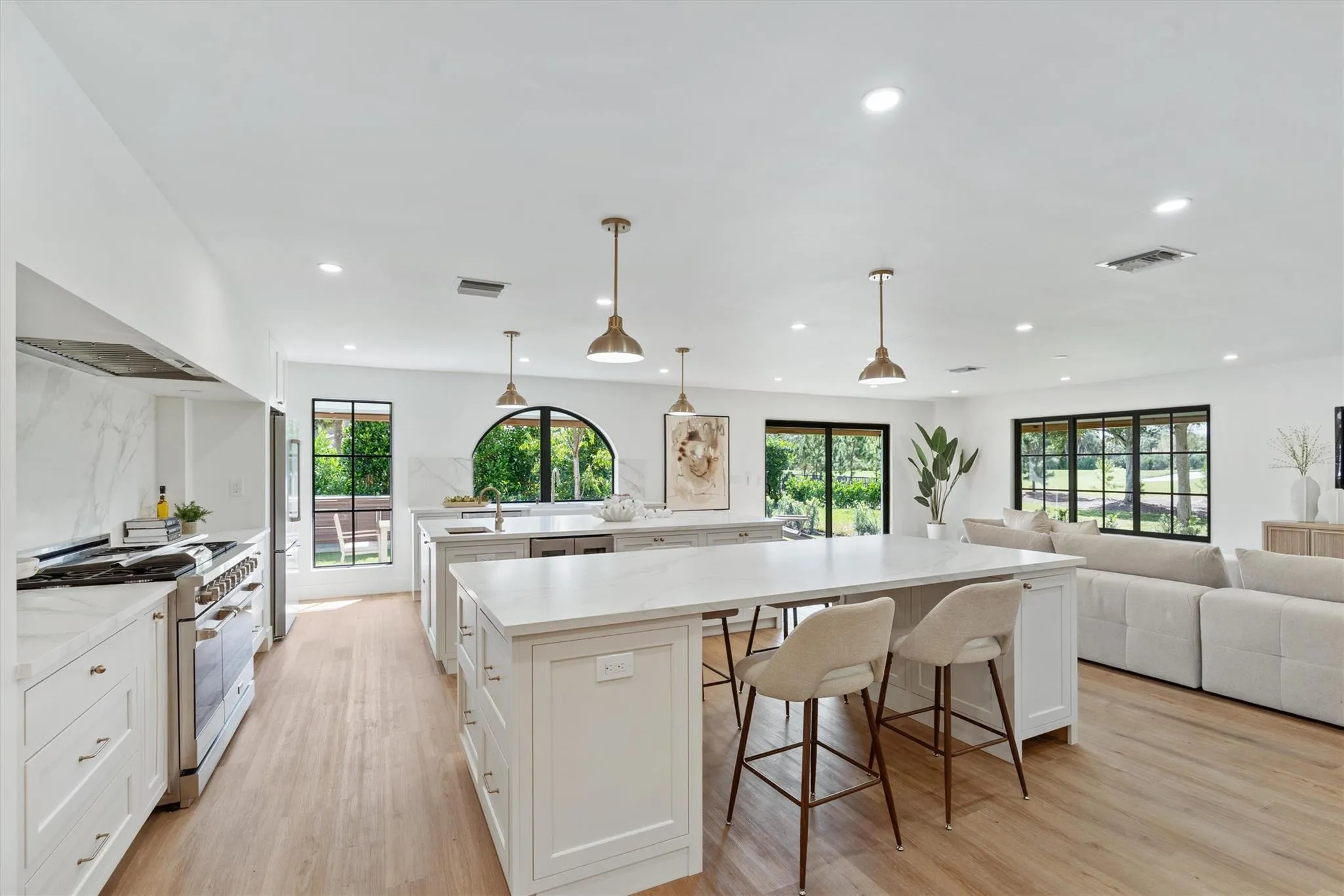 Nestled on a lush ½-acre lot along prestigious Hickory Drive, this exquisitely renovated Modern Tudor offers 5,018 SF of luxury living in the heart of Palm Beach Gardens. Highlights include two Master Suites, 3 oversized bedrooms, an office, gym and 4.5 baths. The chef’s kitchen boasts dual islands, custom inset cabinetry, Neolith countertops, high-end appliances and a walk-in butler’s pantry. Outside, enjoy a new saltwater pool with Carrara marble pavers, outdoor kitchen, fire pit, artificial turf lawn and fruit trees; all overlooking BallenIsles golf course. Home is priced to sell, featuring impact windows, doors and garage doors w/ a 2022 roof. Walking distance to PGA Commons, Midtown PBG, top restaurants & amenities. No HOA and easy access to I-95 and Turnpike.
