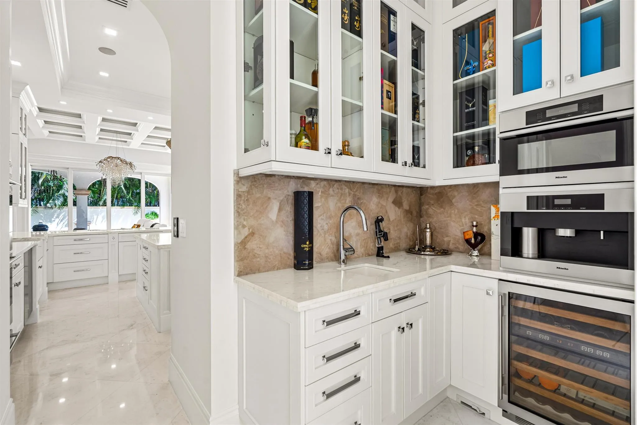 Mastering a mix of classic style and fresh, light ease, this impressive European-inspired showplace by award-winning architect Randall Stofft is beautifully landscaped on an expansive corner property in a desirable beachside neighborhood. Designed for comfortably elegant living in luxe refinement, the stunning interiors open to the resort-like pool terrace and fire-lit loggia with summer kitchen.