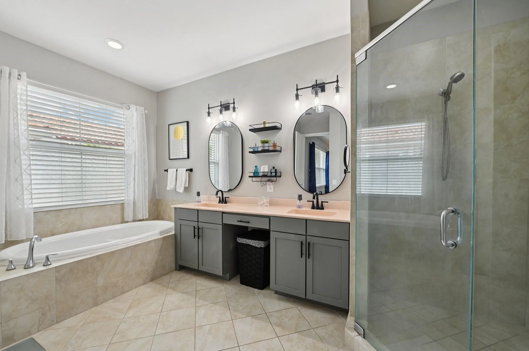 Beautifully updated 3BR/2.5BA townhome with split 2-car garage in the resort-style community of Artesia. The main level features tile flooring, a stylish dry bar, and a fully renovated kitchen with quartz countertops, subway tile backsplash, grey shaker cabinets, gas range, and stainless steel appliances, opening to a spacious dining and living area plus half bath. Upstairs, the primary suite offers vaulted tray ceilings, a walk-in closet and a spa-like bath with dual sinks, a soaking tub and a separate shower. Two additional bedrooms, a full bath, and laundry complete the second floor. Highlights include a 2-year-old A/C, impact windows/doors, a private fenced patio, and ample guest parking. Community amenities: 2 pools, fitness center, indoor basketball, tennis, pickleball and playground