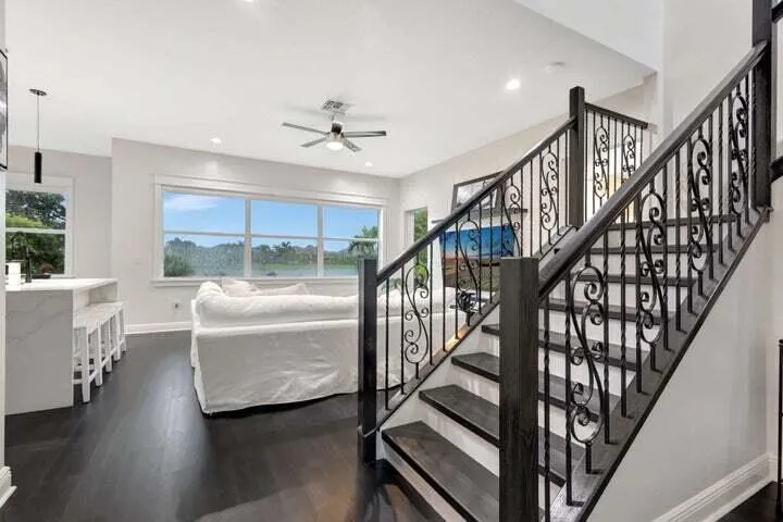 Breathtaking lakefront views in this impeccably updated and maintained home make this a must see. Every room reflects attention to detail, style, and modern comfort. A dream kitchen features a large island, quartz countertops & backsplash, stainless steel appliances, and an abundance of natural light. In addition to 3 bedrooms, the upstairs loft may be used as an office, playroom, or den. The large backyard and patio support relaxing by the lake at any time of day, nights around the fire pit, entertaining, and room for a pool, play set, garden, and more. Close to schools, shopping, dining, entertainment, recreation, world class community amenities including pickleball, pool, hot tub, clubhouse, gym, splash pad, sand volleyball, walking paths, basketball, and more. Move in ready. Must see