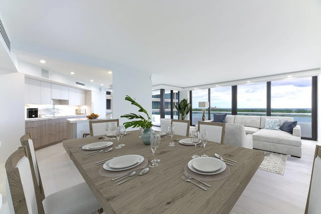 Sleek, modern and luxuriously fully renovated unit. Three bedroom, two and a half baths with sweeping views of the Ocean, Intracoastal Waterway, and the Island of Palm Beach. Over 2,400 total sq.ft. Generous living area. Features include Italian porcelain tile, Miele appliances, custom cabinets, hurricane impact doors and windows, custom walk-in closets, makeup vanity, designer quartz/porcelain countertops, motorized privacy shades, wet bar, surround sound, and ample storage space throughout. East and West exposures. Outdoor balcony offers exceptional living/dining space and water views. Full service, luxury building with 24-hour security, valet parking, concierge, two swimming pools, fitness room, conference room, and tennis court with pickleball. Pet friendly.