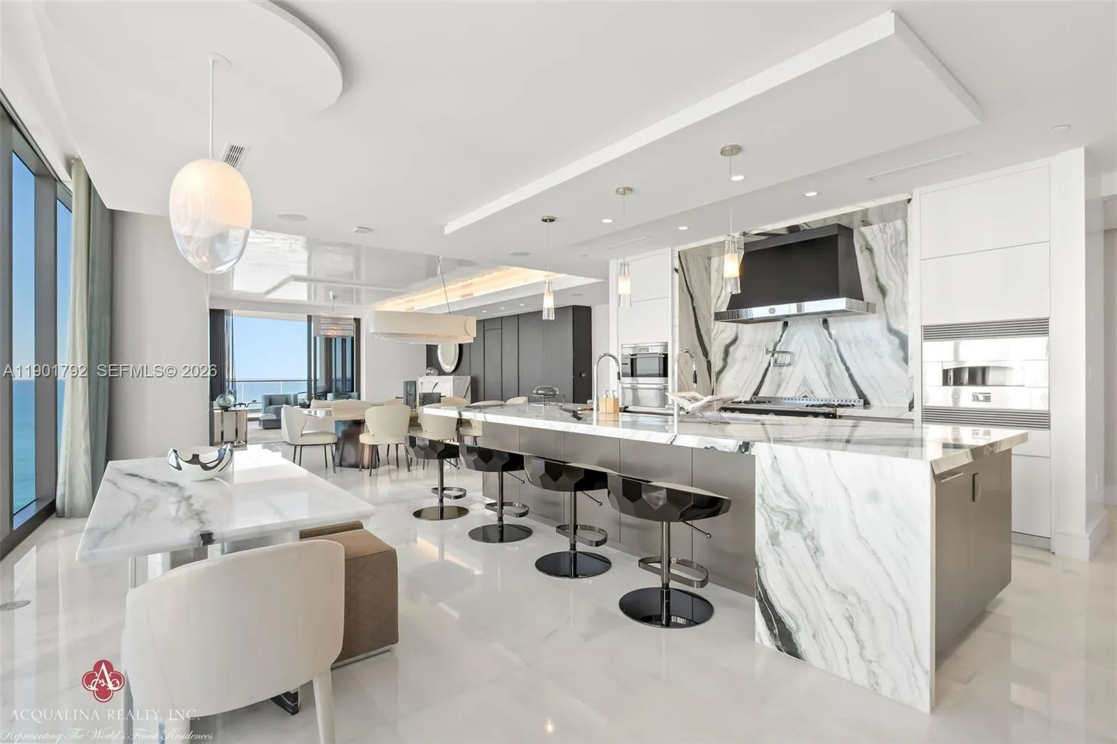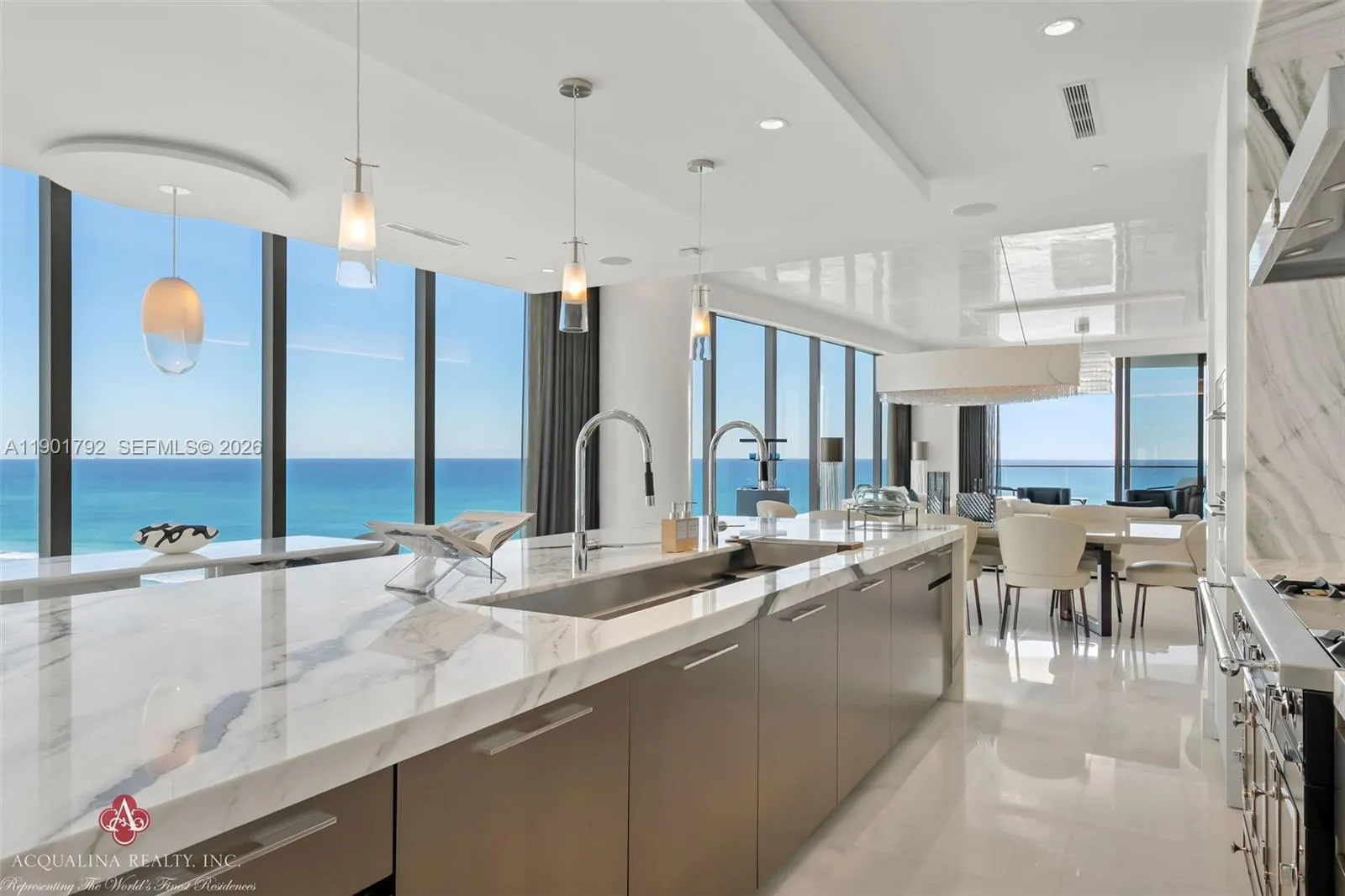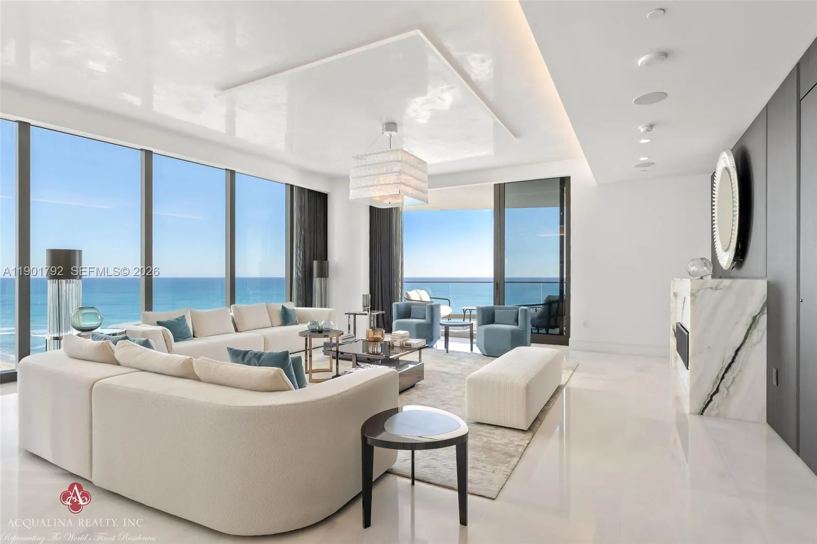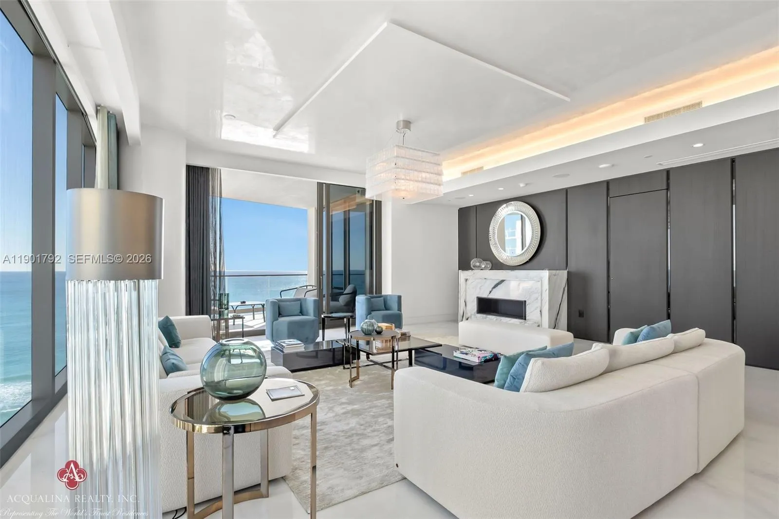 Opulence and elegance await as you step into this extraordinary four-bedroom residence, currently curated as a two-bedroom with a family room, office, and expansive living and dining areas. rnrnLocated at The Estates at Acqualina with on-site sales office facilitating daily showings, This spectacular flow-through corner home exemplifies world-class luxury. The north-facing residence showcases impeccable finishes throughout and a state-of-the-art chef’s kitchen featuring a 14-foot island, gas La Cornue range, pizza oven, and steam oven perfect for both intimate living and grand entertaining.rnrnAdditional highlights include an outdoor kitchen, private sauna, and a stunning Great Room adorned with Baccarat sofas, chandelier, and mirrors. The remaining interiors are exquisitely furnished by Fendi Casa, Holly Hunt, Bentley and Roche Bobois, creating a refined yet inviting atmosphere to enjoy..rnrnResidents enjoy the unparalleled five-star Acqualina lifestyle, reserved for a select few who can call The Estates at Acqualina home. Available for immediate occupancy.rnrnrnAcqualina Realty Sales & Leasing Office on-site — open seven days a week.