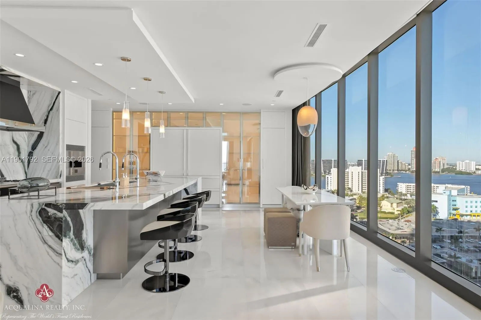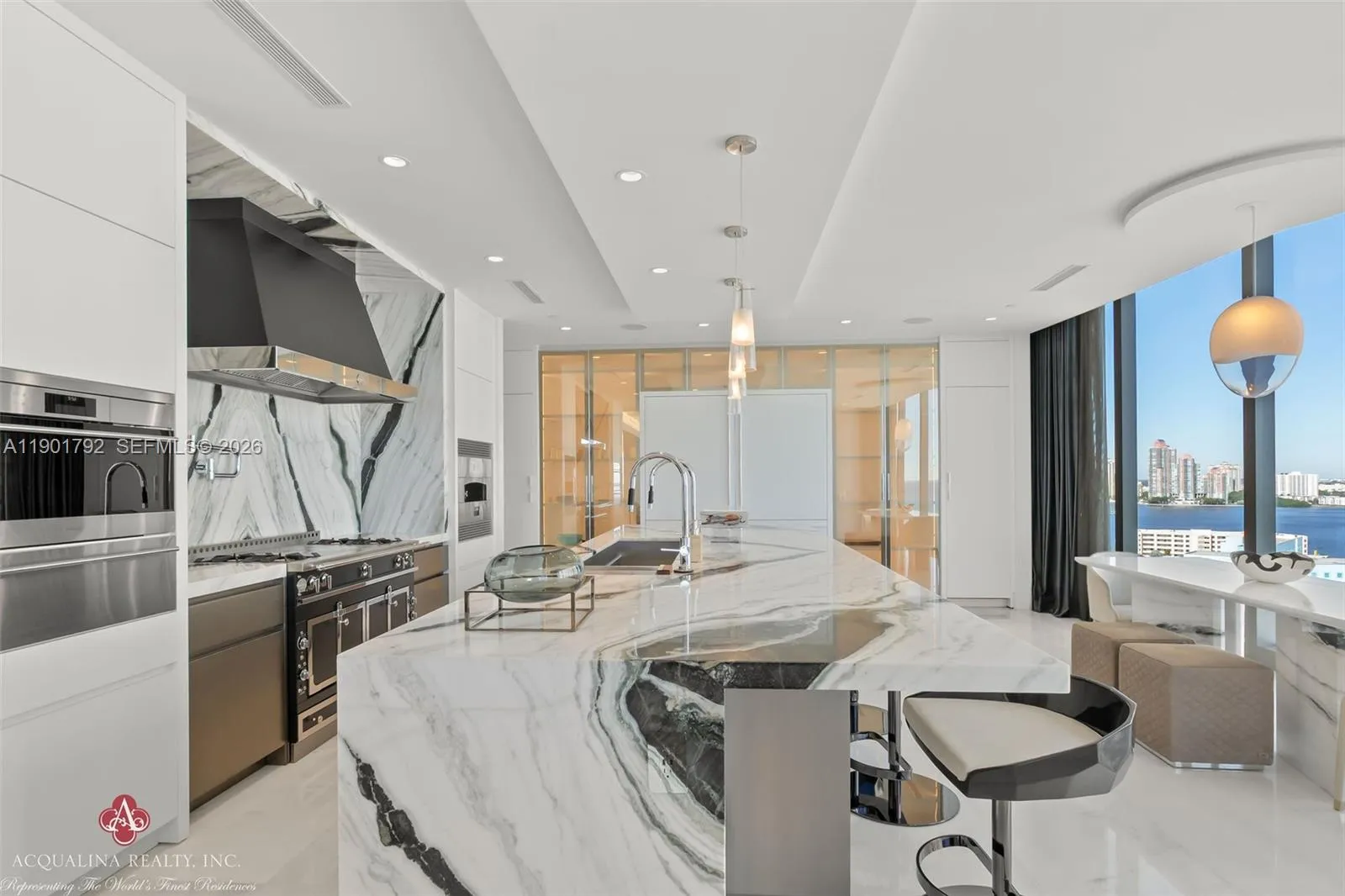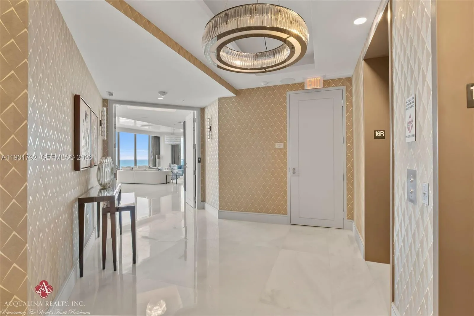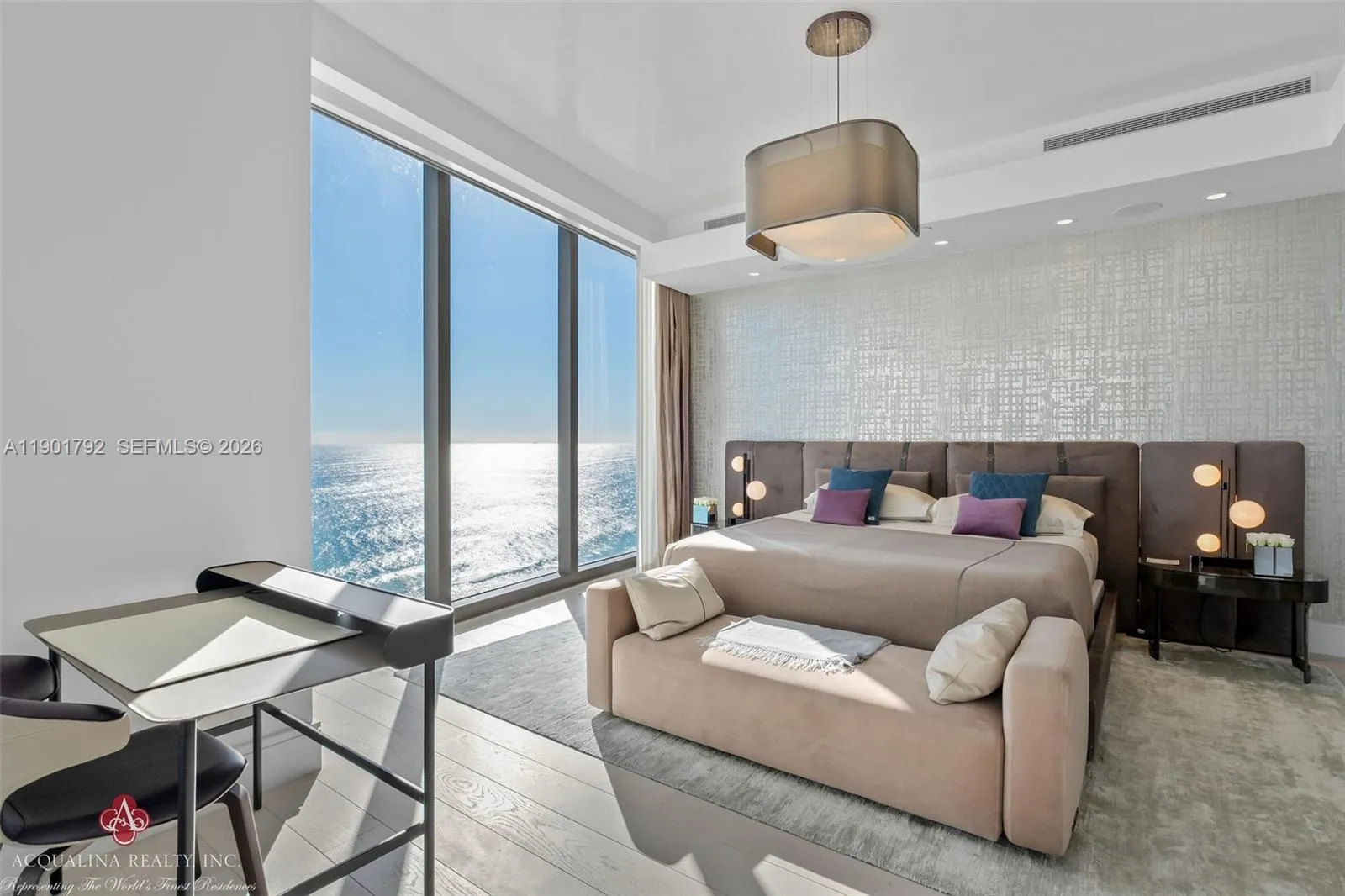 Opulence and elegance await as you step into this extraordinary four-bedroom residence, currently curated as a two-bedroom with a family room, office, and expansive living and dining areas. rnrnLocated at The Estates at Acqualina with on-site sales office facilitating daily showings, This spectacular flow-through corner home exemplifies world-class luxury. The north-facing residence showcases impeccable finishes throughout and a state-of-the-art chef’s kitchen featuring a 14-foot island, gas La Cornue range, pizza oven, and steam oven perfect for both intimate living and grand entertaining.rnrnAdditional highlights include an outdoor kitchen, private sauna, and a stunning Great Room adorned with Baccarat sofas, chandelier, and mirrors. The remaining interiors are exquisitely furnished by Fendi Casa, Holly Hunt, Bentley and Roche Bobois, creating a refined yet inviting atmosphere to enjoy..rnrnResidents enjoy the unparalleled five-star Acqualina lifestyle, reserved for a select few who can call The Estates at Acqualina home. Available for immediate occupancy.rnrnrnAcqualina Realty Sales & Leasing Office on-site — open seven days a week.