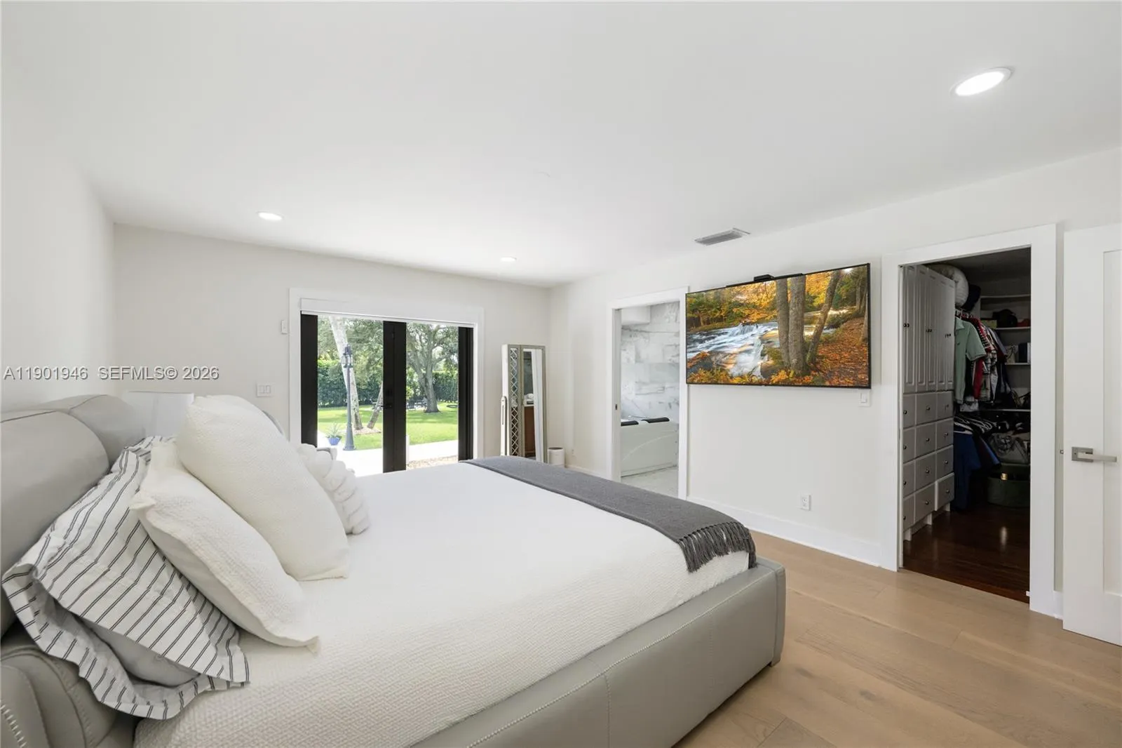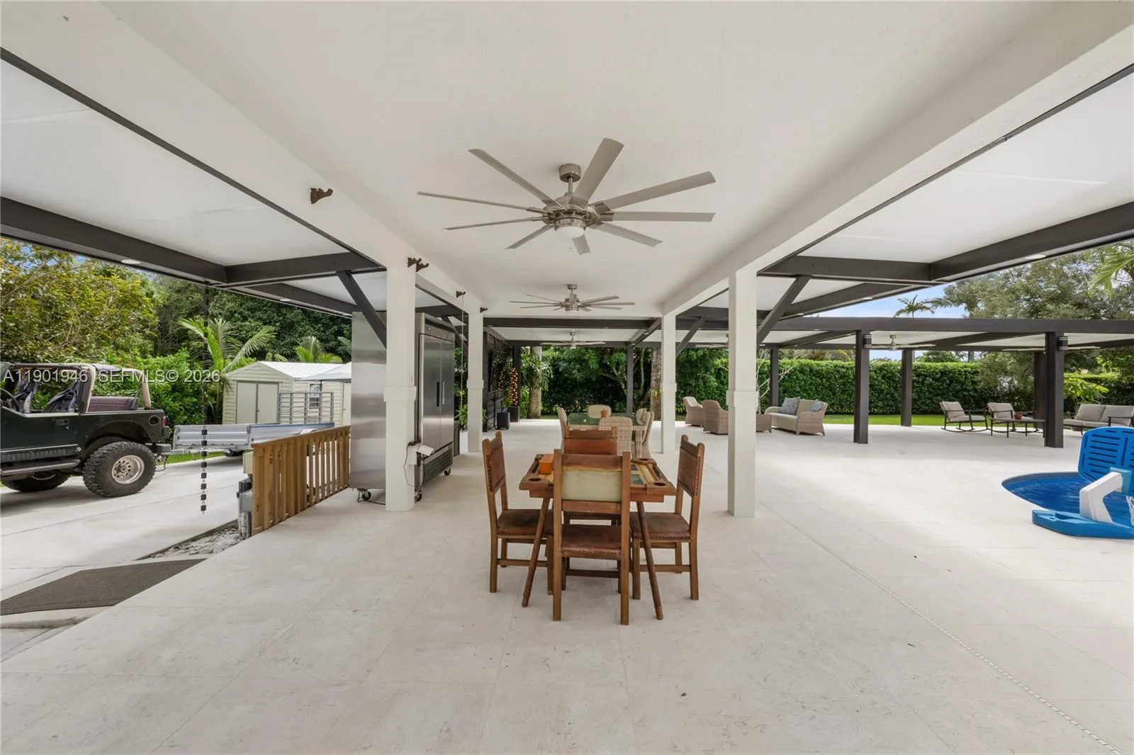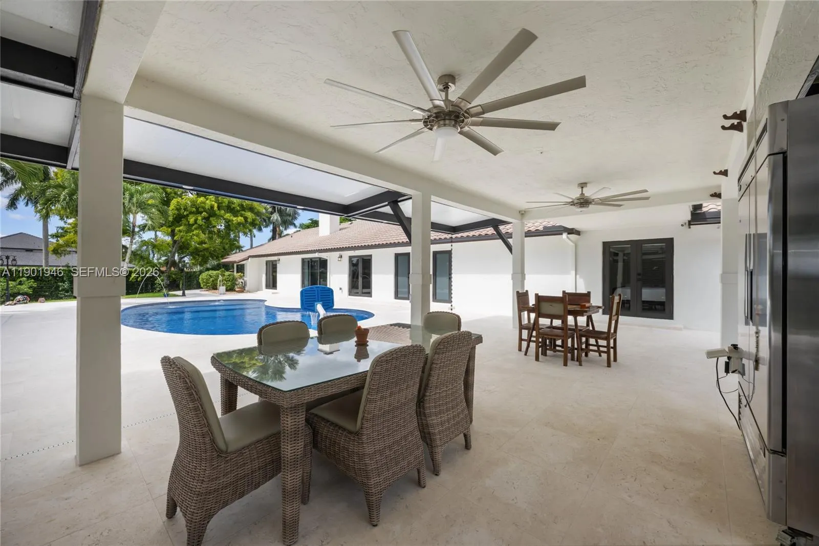 Homes are rarely available in SW Ranches’ Ivanhoe Estates! This sanctuary sits on 1+ acre of manicured landscaping and fruit-tree splendor. Inside a fresh, contemporary vibe that flows effortlessly throughout the home. This 5/5 home features a primary suite PLUS two additional master bedrooms. The heart of the home: the great room-an open-concept that seamlessly integrates kitchen, dining, family and living spaces within once connected space. Luxury kitchen with Taj Mahal stone & high-end s/s appliances. A resort-style terrace with pool, oversized pergola and a full cabana bath! Move-in ready with impact windows/doors throughout, including garage. The split floor plan provides a perfect haven for multigenerational families, guest, or WFH professionals. Walkthru video available. Must see!