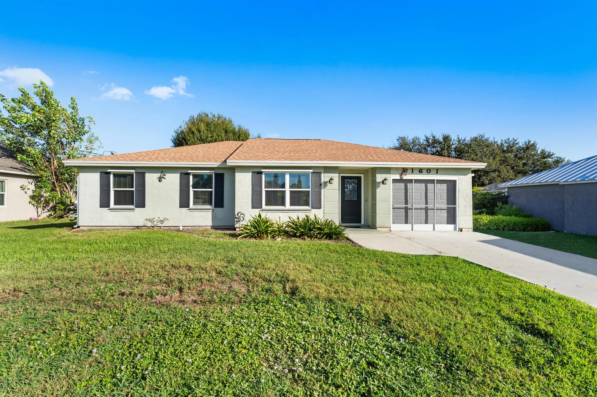 Fall in love with this bright, airy, move-in ready home! The open layout boasts soaring ceilings and abundant natural light. Major upgrades – new roof, impact windows/doors, and water heater – offer lasting peace of mind. The updated kitchen features new cabinets, quartz countertops, and a raised breakfast bar that flows into spacious living areas with recessed lighting and 16” tile floors. Three well-sized bedrooms (one ensuite) include wood laminate floors and large closets. A second bath adds a new vanity, toilet, and tub. Enjoy a fenced patio and large backyard – perfect for relaxing or adding a pool. The screened garage adds flexible living space. Ideally located near I-95, the Turnpike, shopping, dining, Tradition, St. Lucie West, and Cleveland Clinic Hospital. A true turnkey gem!