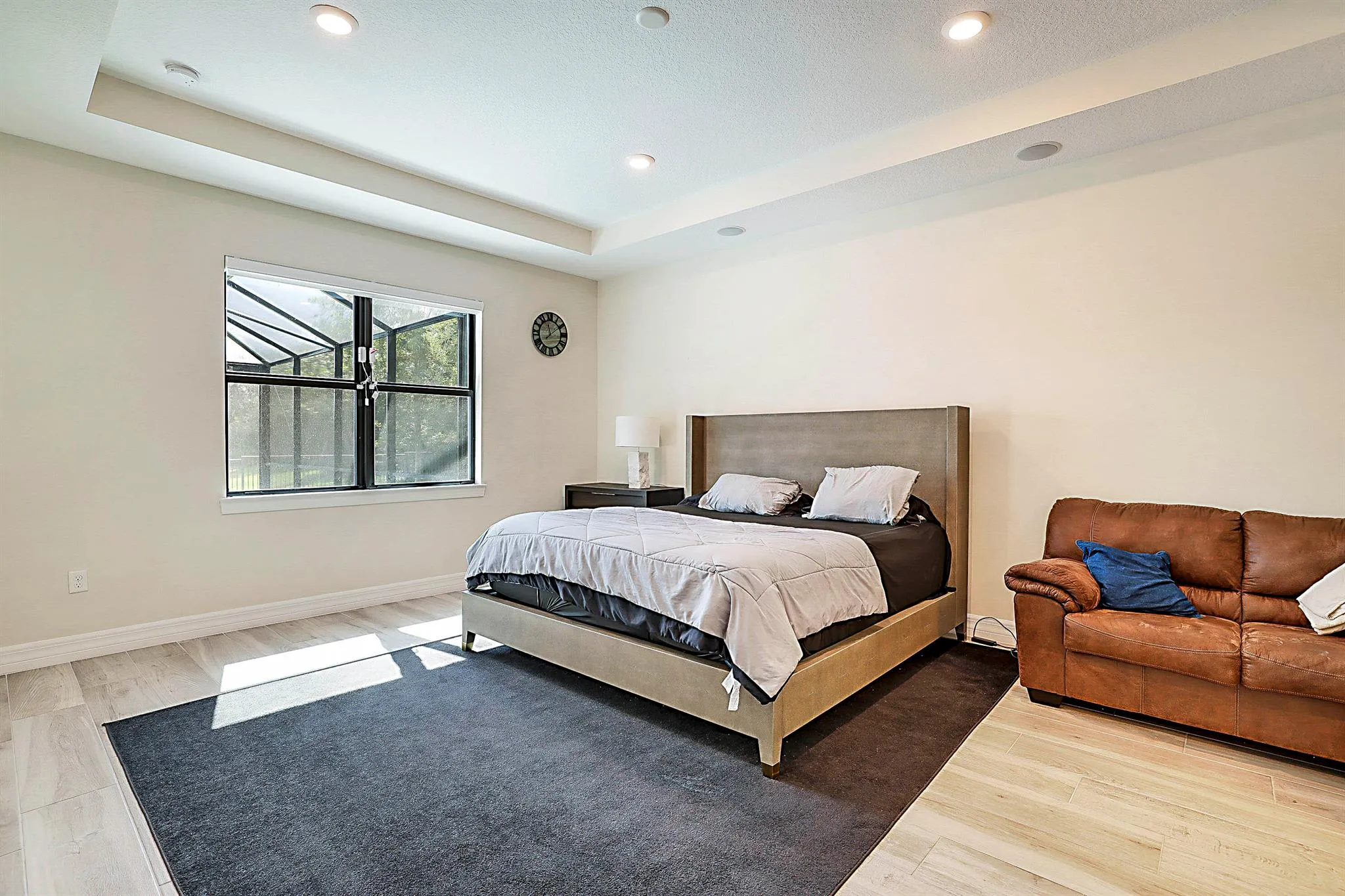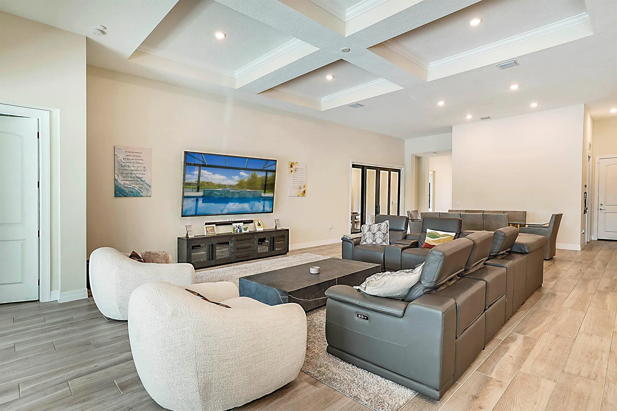 Welcome to luxury living in the prestigious gated community of Ancient Tree! This stunning 3-bed, 3-bath home with a dedicated den/study and 3-car garage offers designer details, modern finishes, and resort-style amenities throughout (Rent includes lawn maintenance & community amenities such as clubhouse, pool, tennis/pickleball courts, and golf cart access to Sandhill Crane Golf!!!)Step inside to an open-concept living space highlighted by elegant tray ceilings, wood-look tile flooring, and oversized sliding doors that flood the home with natural light. The chef’s kitchen is a true showpiece–featuring quartz countertops, stainless steel KitchenAid appliances, a gas cooktop, double ovens, shaker-style cabinetry, and an oversized island perfect for entertaining.