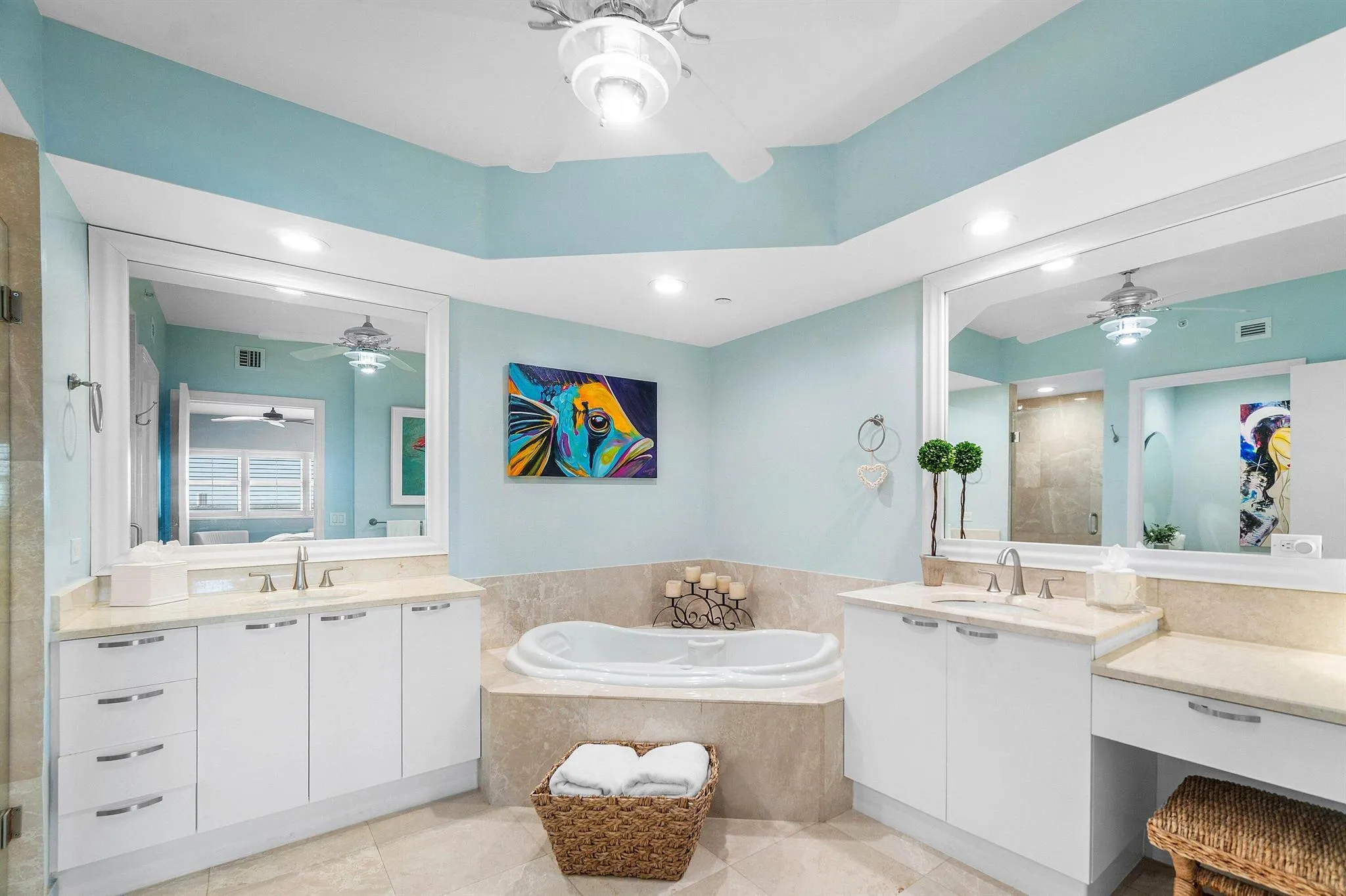 Stunning 2BR / 2.5 BA condo, impeccably updated & maintained! Remodeled kitchen w large slab granite counters & backsplash, custom cabinetry. Luxury vinyl floors throughout, private ensuite baths. His & her walk-in closets. Primary bath has jetted bath, frameless shower, double vanities, & water closet. Split floor plan, semi-private fob elevator access. Furniture negotiable. NEWLY RENOVATED rooftop oasis w/pool, spa, BBQ areas, tennis, pickleball, bocce. Clubhouse, billiard room & fitness center. 24 hr manned gate, temperature controlled storage, walk to Publix. Adjacent marina w/dry docks available, be on the ocean in minutes; no fixed bridges! Pet friendly.
