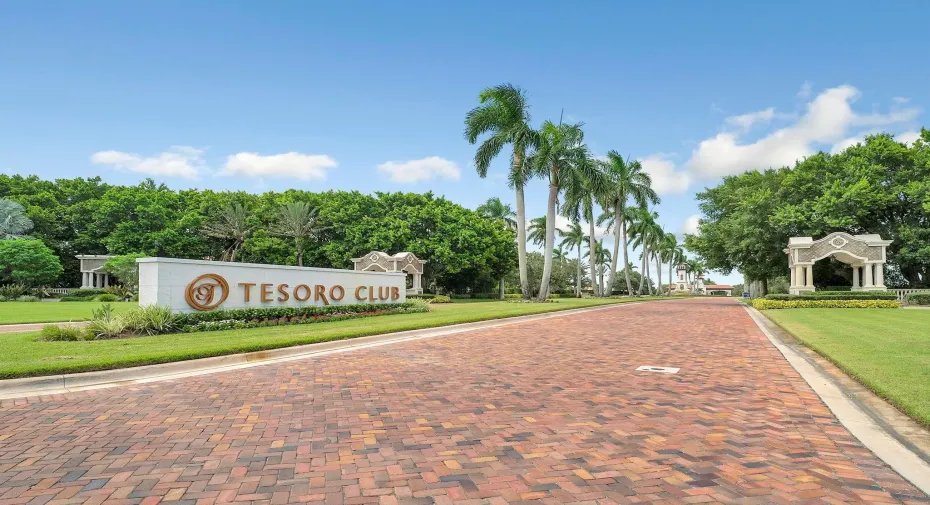 Discover the perfect opportunity to build your dream home on this prime waterfront lot in prestigious Tesoro Club, a private gated golf community. This exceptional property offers stunning water views and access to world-class amenities. Tesoro Club boasts an 18-hole Arnold Palmer-designed golf course, with golf memberships available, allowing you to enjoy the lush fairways and top-notch practice facilities, including a driving range, chipping, and putting areas. Beyond golf, the community features a resort-style swimming pool with poolside cabanas, a relaxing hot tub, and a restaurant for convenient dining. Stay active with access to 9 tennis courts, 11 pickleball courts, and 2 bocce courts, all within the beautifully landscaped grounds of Tesoro Club.