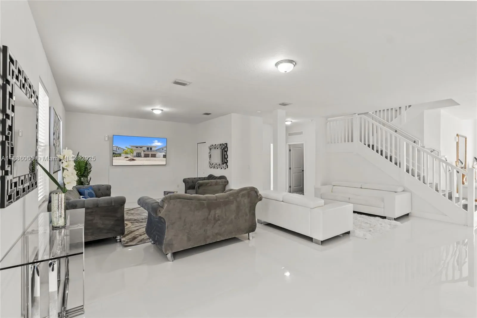 No association approval required! Gorgeous home with a modern open floor plan boasting 3,499 sq ft of living area completely upgraded with beautiful porcelain floors throughout, great finishes, stainless whirlpool top of the line appliances, kitchen island, quartz counter tops, plenty of windows for natural light and ambiance, covered terrace area, and more! With 4 spacious bedrooms and its 4 beautiful bathrooms. This home is perfect for a family looking for the tranquility of an excellent neighborhood and a location close to excellent schools, shopping, restaurants, proximity to the turnpike, gyms and places of worship.