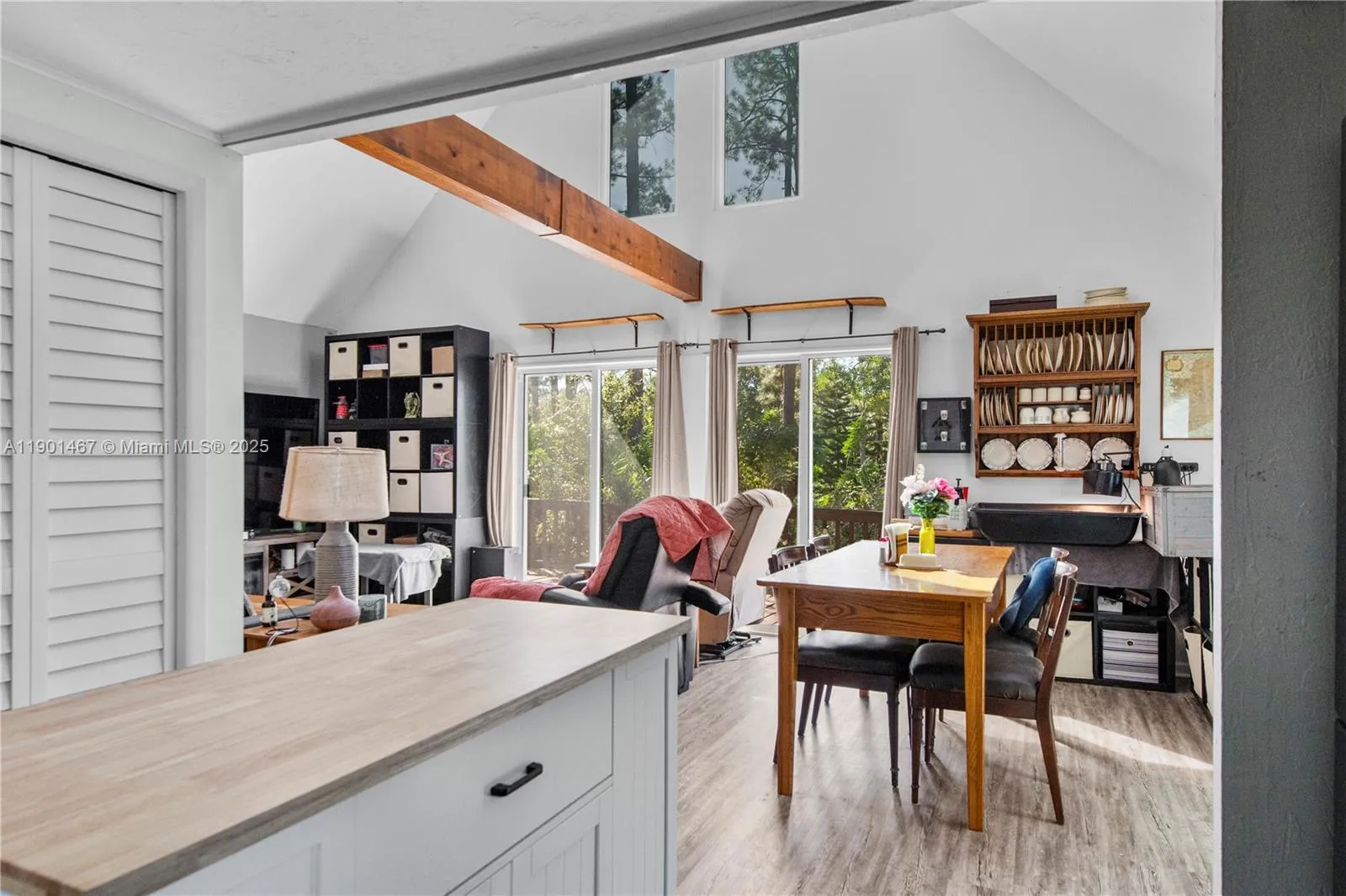 Rural Cabin surrounded by nature! This well maintained 2 bed 1.5 bath home is the perfect getaway. Upon entering you will be greeted by an open concept layout complete with cathedral ceilings and lvp flooring throughout! The open concept kitchen boasts ample cabinet space and stainless steel appliances. Large windows overlook the surrounding landscape while flooding the living space with tons of natural light. Downstairs is a large bedroom off the kitchen and a bathroom complete with an updated vanity and shower. The upstairs is split between a spacious loft and a bedroom boasting exposed beams and a half bath. In addition it has a newer AC and roof. Other amenities include a covered porch, deck, hot tub, and outbuilding. All appliances convey. Schedule your showing today!