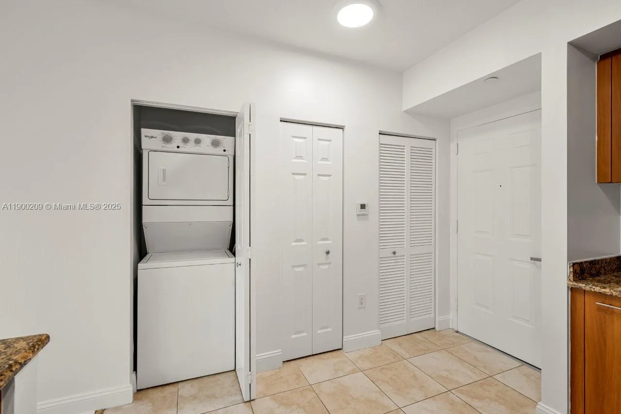 Magnificent and impeccable 2-bedroom, 2-bath condo offering a bright, open layout. Maintenance includes internet, cable TV, water, and two assigned garage spaces. Features include stainless steel appliances, granite counters, impact glass, European cabinetry, marble shower, soaking tub, and smart key fob entry. Enjoy an elegant lobby, resort-style tropical pool and jacuzzi, 24-hour manned security, high-tech security system, fitness center, dry sauna, and more.