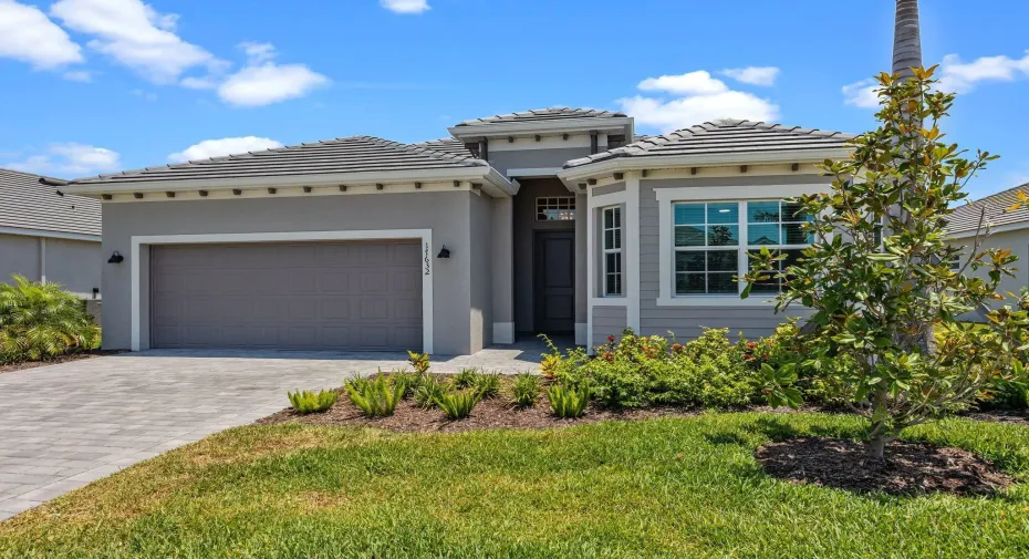 Welcome to your dream home in the highly sought-after community of Wellen Park in Venice, Florida, with a golf deeded lot. This beautifully designed residence offers 3 spacious bedrooms and 2 full bathrooms, all thoughtfully arranged in a split floorplan for optimal privacy and functionality. At the heart of the home, the gourmet kitchen features a large island, wall oven, wall microwave, electric cooktop, and a generous walk-in pantry. The open layout flows seamlessly into the family room and dining room, ideal for entertaining or relaxing with loved ones. Elegant trey ceilings add a touch of sophistication to the main living areas, while volume ceilings
