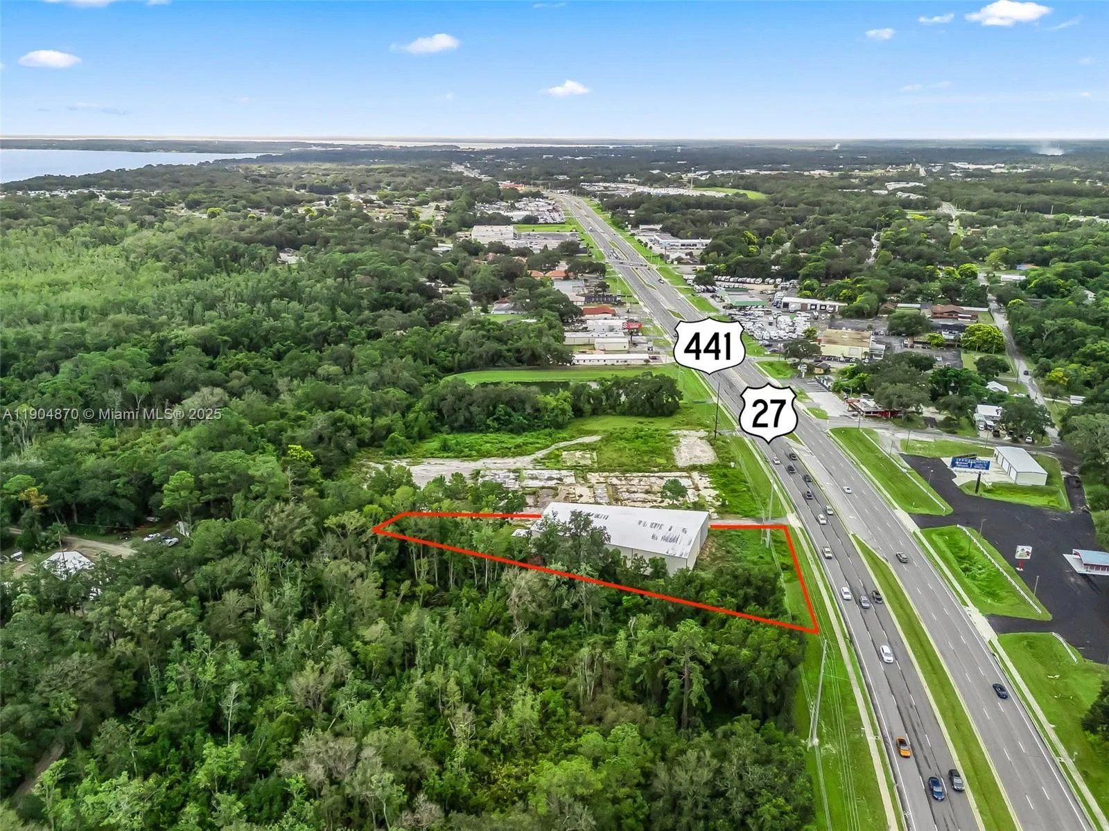 Located in the fast-growing city of Fruitland Park, this property offers a prime opportunity for investors, developers, or business owners seeking flexible commercial or industrial space in Central Florida. The site features a pre-engineered alloy building with 20+ ft ceilings, three roll-up doors (two at grade, one truck-height loading dock), and new electrical and restrooms. City water, sewer, and electric are fully connected, reducing development time and costs. With over 40,000 cars passing daily, the property offers excellent road visibility and signage potential.