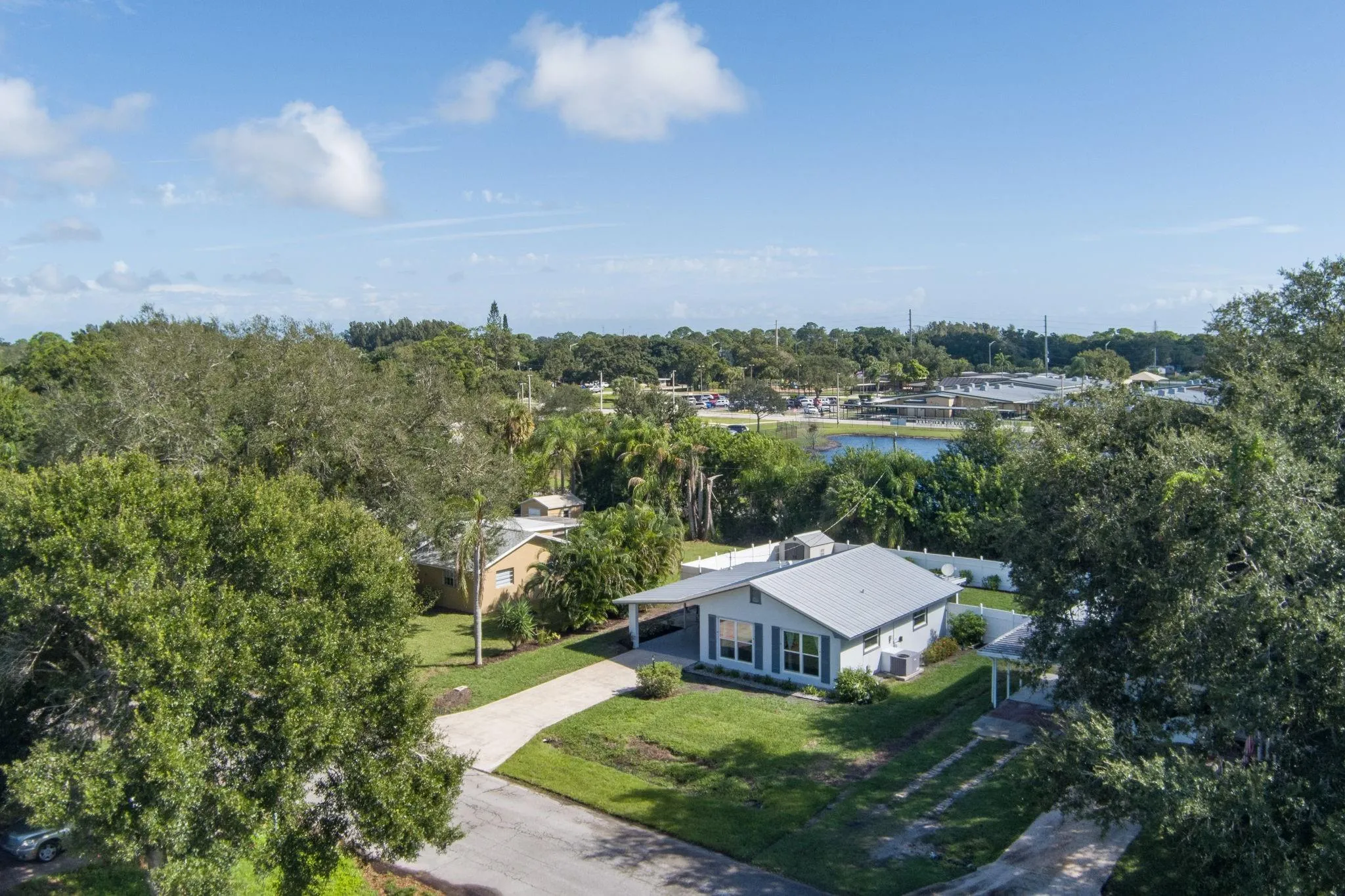 Imagine simple living here within this peaceful, idyllic, and well-loved home that awaits you! Perfect non-HOA hard-to-find concrete block, adorable 2/2 Bungalow on a dead-end paved road. Backs up to the elementary school access road and the lake. Ideal location with gorgeous landscaping to enjoy. A BONUS spacious .23 fenced yard, metal roof, BONUS Full IMPACT windows, BONUS GENERATOR, screened covered lanai, large shed, and patio. Home is on county water and septic, and is close to all beaches, shopping, schools, and more. It is a winner!