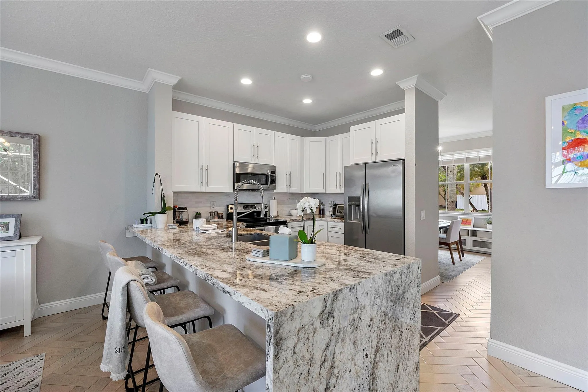 Beautiful 4-bed, 2.5-bath home in the gated North Lakes community of Weston. This spacious 2-story residence offers 2,133 sq ft of bright living space with an open kitchen featuring granite countertops and stainless-steel appliances. Tile floors throughout, upgraded bathrooms, and large bedrooms with laundry conveniently upstairs. Enjoy a screened patio and fully fenced backyard. Community amenities include a pool, playground, picnic areas, and scenic walking paths. Top-rated schools and a quiet family-friendly setting!