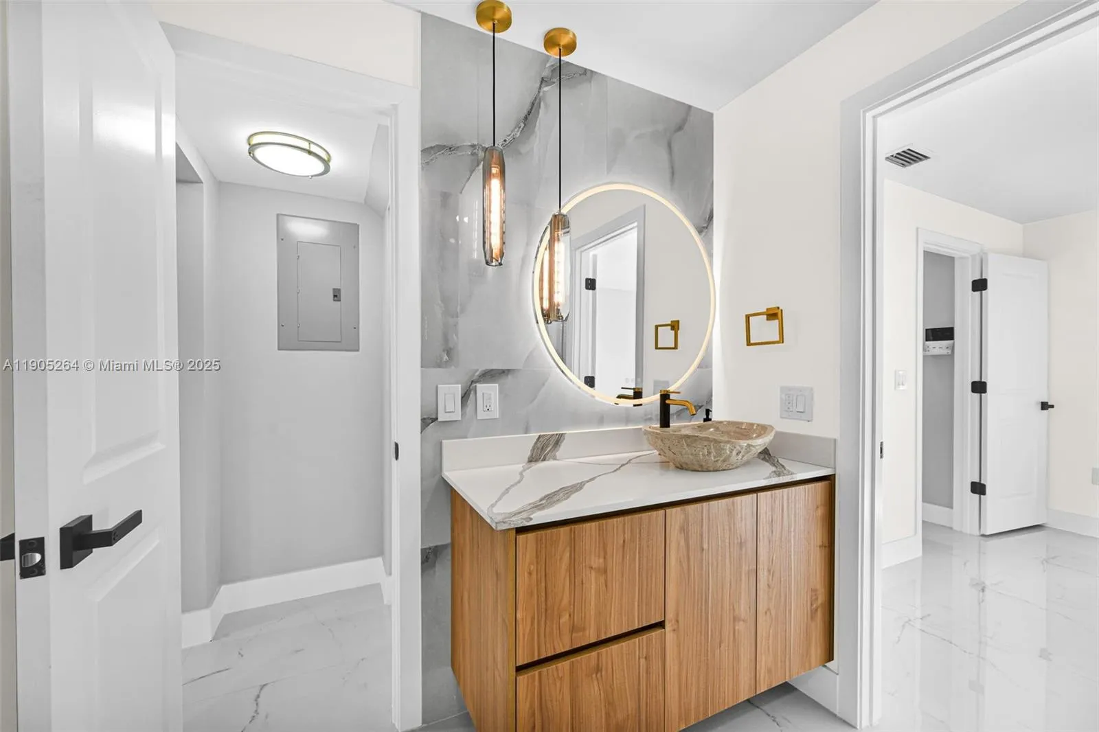 Imagine Sunday mornings in your stunning new kitchen, custom cabinets gleaming as sunlight streams through impact windows onto luxurious porcelain floors. Kids laugh in your private Zen garden while coffee brews. This exquisitely remodeled 5-bed, 3-bath, 2054 sf Hammocks sanctuary is where your story begins. Grandparents thrive in the downstairs suite, a spa retreat with brushed gold fixtures offering total independence. Upstairs, four cozy bedrooms give everyone their own sanctuary. Enjoy dinners under soft recessed lights, then gather in the living room where a gorgeous chandelier casts a magical glow. Walk to A-rated schools, explore lakeside parks, or ice skate on hot Miami days. This Hammocks oasis wraps you in resort-style serenity. Ready to make this luxury beauty your forever home?