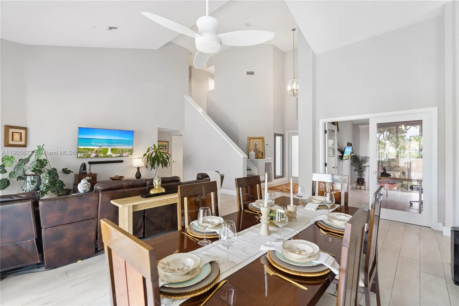 Breathtaking lakefront views anchor this renovated Estancia model on an oversized 10,000+ sq. ft. lot. The 4BR + den, 3BA layout features vaulted ceilings and extensive storm protection: impact windows and doors, and accordion shutters. (Note: two small master-bedroom windows are non-impact and protected by accordion shutters.) The two-car garage includes an EV charger, and fiber-optic internet keeps everything fast. Interior upgrades include brand-new appliances dishwasher, microwave, refrigerator, washer & dryer with gas range installation included. Outside. Enjoy the renewed saltwater pool and spa with updated equipment overlooking the tranquil lake. Top-rated schools nearby and an easy walk to the town center complete the lifestyle package.