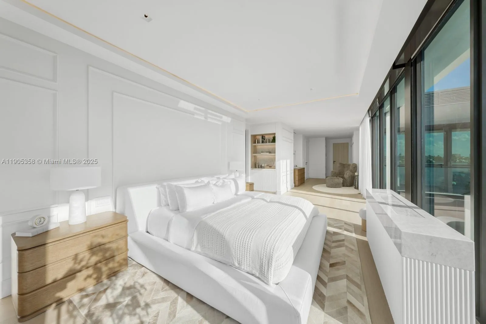 Step Inside With Me! Masterfully designed, this newly completed residence in gated Biscayne Point is where relaxed island living meets worldly sophistication. Framed by open water views, its iconic arrival experience is defined by a tranquil waterscape and marble walls. The grand foyer unfolds to soaring 18′ ceilings crowned by motorized chandeliers reminiscent of the Baccarat Hotel. Curated by Francois Frossard, the interiors are defined by custom millwork & drapery, Parisian-inspired panels, and oak flooring. The Taj Mahal stone kitchen features an expansive eat-in island, concealed pantry and 6-burner cooktop. The bayfront primary suite showcases a bespoke onyx bath and a grand dressing room with safe-room capabilities. Advanced AV, security systems, and home gym complete this offering.