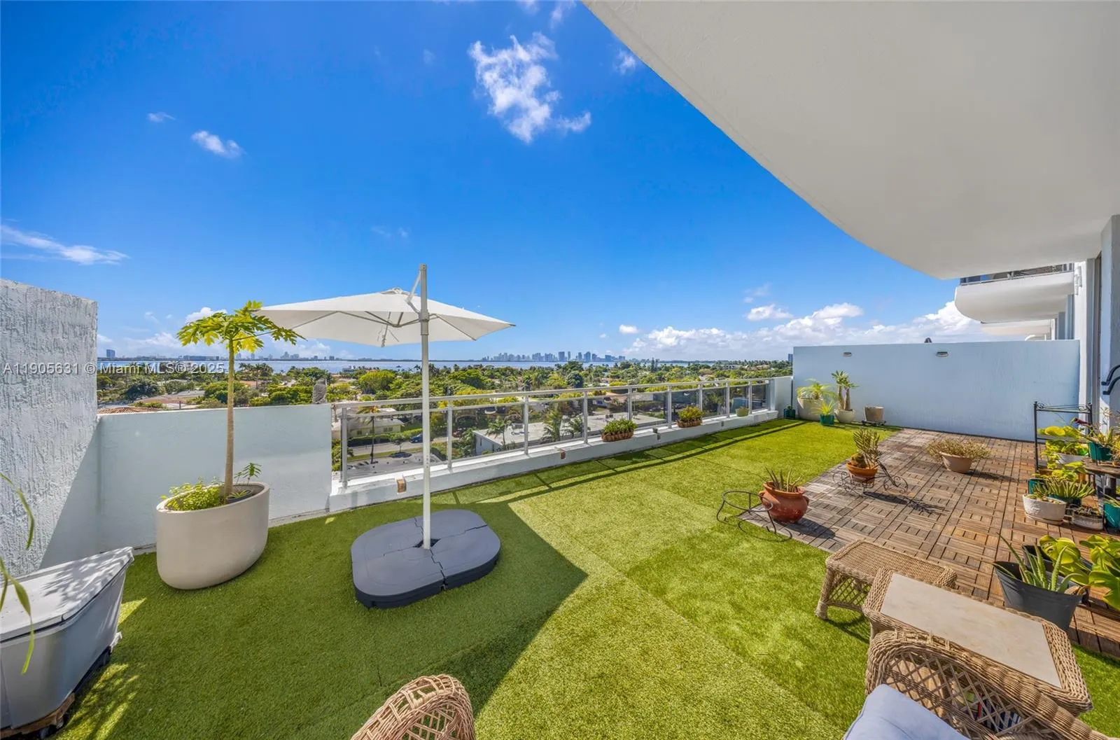 Live above it all at The Lexi! This stunning 2 bed + den / 2 bath residence offers 1,735 SF of interior space plus an expansive 500 SF terrace overlooking Treasure Island, the Bay, and Downtown Miami. The oversized patio is perfect for those with pets, a love for gardening, or anyone who enjoys entertaining outdoors. The open layout and 10-foot ceilings create a bright, airy feel that lives like a townhome. Elegant marble floors flow through the living areas, complemented by wood flooring in the bedrooms. Includes two assigned parking spaces and a large storage unit. Enjoy resort-style amenities including a newly rebuilt pool and deck, fitness center, game and party room, 24/7 attended lobby, EV charging stations, and more.