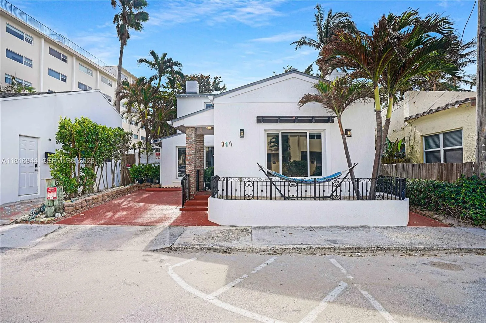 Fully renovated Hollywood beach home blending classic charm with modern flair—just steps from the sand! This 3-bed, 2-bath gem features a spacious master suite with fireplace, chef’s kitchen with stainless steel appliances, wine fridge, and bar area. Enjoy soaring cathedral ceilings, wood floors, and a cozy brick fireplace in the living area. Outside, unwind in your tropical retreat with a covered patio, grill station, lounge area, and relaxing jacuzzi. Perfect as a dream beach residence or a high-income rental. Live where every day feels like a vacation!