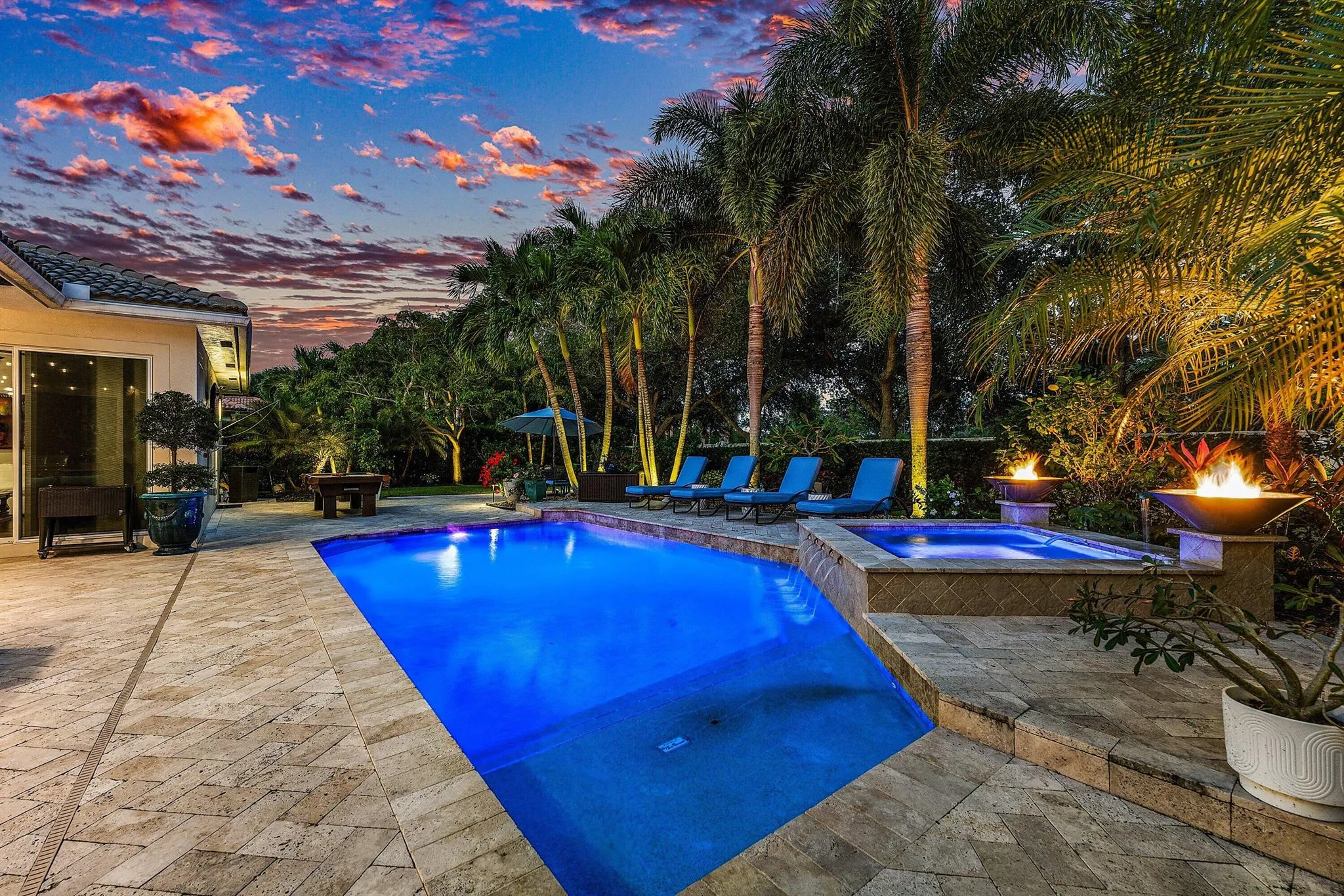 Welcome to this stunning single-family residence located in the prestigious gated community of Rialto in Jupiter, Florida. This elegant home features 4 bedrooms plus a private office/den, offering over 3,300 sq ft of thoughtfully designed living space that blends comfort, sophistication, and functionality.Step inside to an open, airy floor plan with 10-ft ceilings, designer finishes, and abundant natural light. The updated gourmet kitchen showcases new stainless steel appliances, granite countertops, and ample cabinetry–perfect for both everyday living and entertaining. The resort-style backyard features a custom heated pool and spa with dramatic fire features, and a fully equipped outdoor kitchen, whole house generator, and much more! See supplement for additional features.