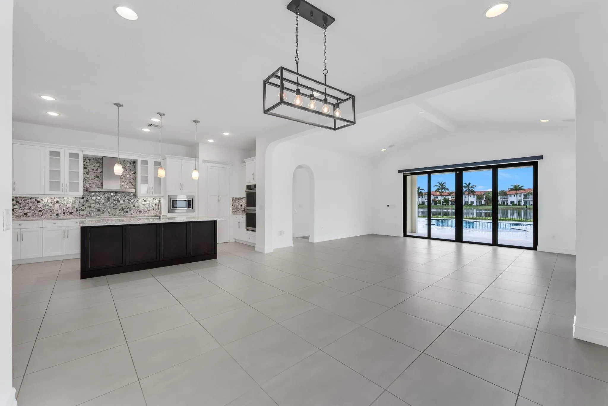 Experience modern luxury in this exquisite 3-bedroom, 2.5-bath residence with an open-concept design that seamlessly blends contemporary elegance with comfort, offering breathtaking vistas of the pool and tranquil lake beyond.rnFully equipped with SOLAR PANELS, it maintains average electricity costs under $70 per month. A newly installed Vivint smart security system provides peace of mind with advanced home monitoring and seamless smart-home integration.rnBeautiful gourmet kitchen with premium Jenn-Air appliances, speckled white quartz countertops, a sleek cooktop, double wall ovens, and a spacious center island with custom cabinetry. rnstunning master bathroom spa-inspired bath with an upgraded soaking tub and jacuzzi.rnThe backyard has been transformed into an entertainer’s paradise.