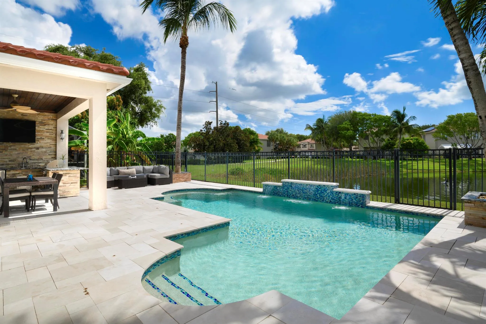 Stunning 4-Bedroom Home with Lake View, Custom Luxury Kitchen, Impact Windows, Smart Security & Resort-Style Outdoor LivingThis fully remodeled 4-bedroom, 2.5-bath home offers a perfect blend of timeless elegance, high-end finishes, and modern smart-home features–all set on a premium lot with tranquil lake views. The first floor features marble travertine flooring and custom marble stairs with reinforced structure, while the second floor offers warm engineered wood flooring.At the heart of the home is a custom traditional luxury kitchen with solid wood cabinetry, an oversized island, built-in coffee maker, built-in microwave, and a large designer range hood. High-end chandeliers throughout the home add an extra touch of sophistication. All closets feature custom cabinetry.