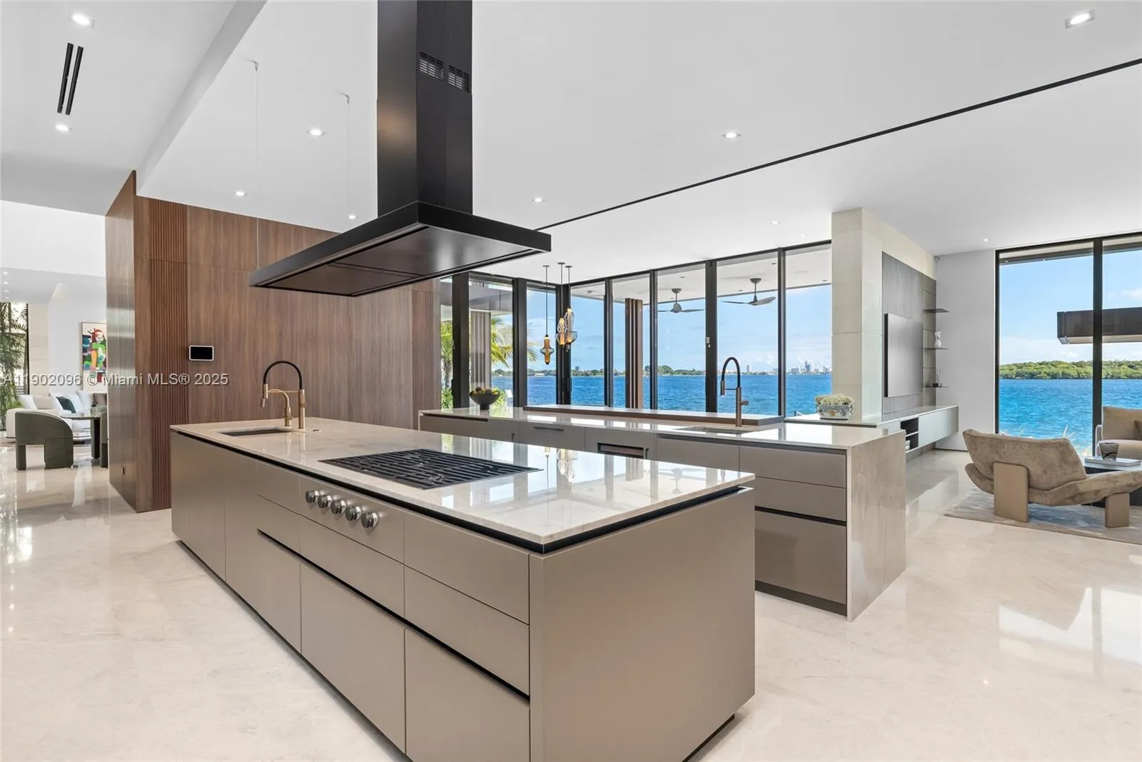 Experience uncompromising luxury in this newly completed tropical modern estate, set within the exclusive guard-gated enclave of Sans Souci Estates. Developed by Sunlight Homes and designed by Preschel Bassan Studio, this 8,000 SF residence offers 7 bedrooms including staff quarters, 7 full and 2 half baths. A stone façade opens to interiors with a chef’s and butler’s kitchen, custom millwork, imported stone, and European oak flooring. Features include a wine room, high ceilings, elevator, and 3-car garage. Outdoors, 103 feet of water frontage with new seawall and dock showcase bay views and downtown sunsets. Furnished by Minotti, Baxter, and other iconic brands, this is a rare modern masterpiece moments from world-class shopping, dining, and coastal attractions.