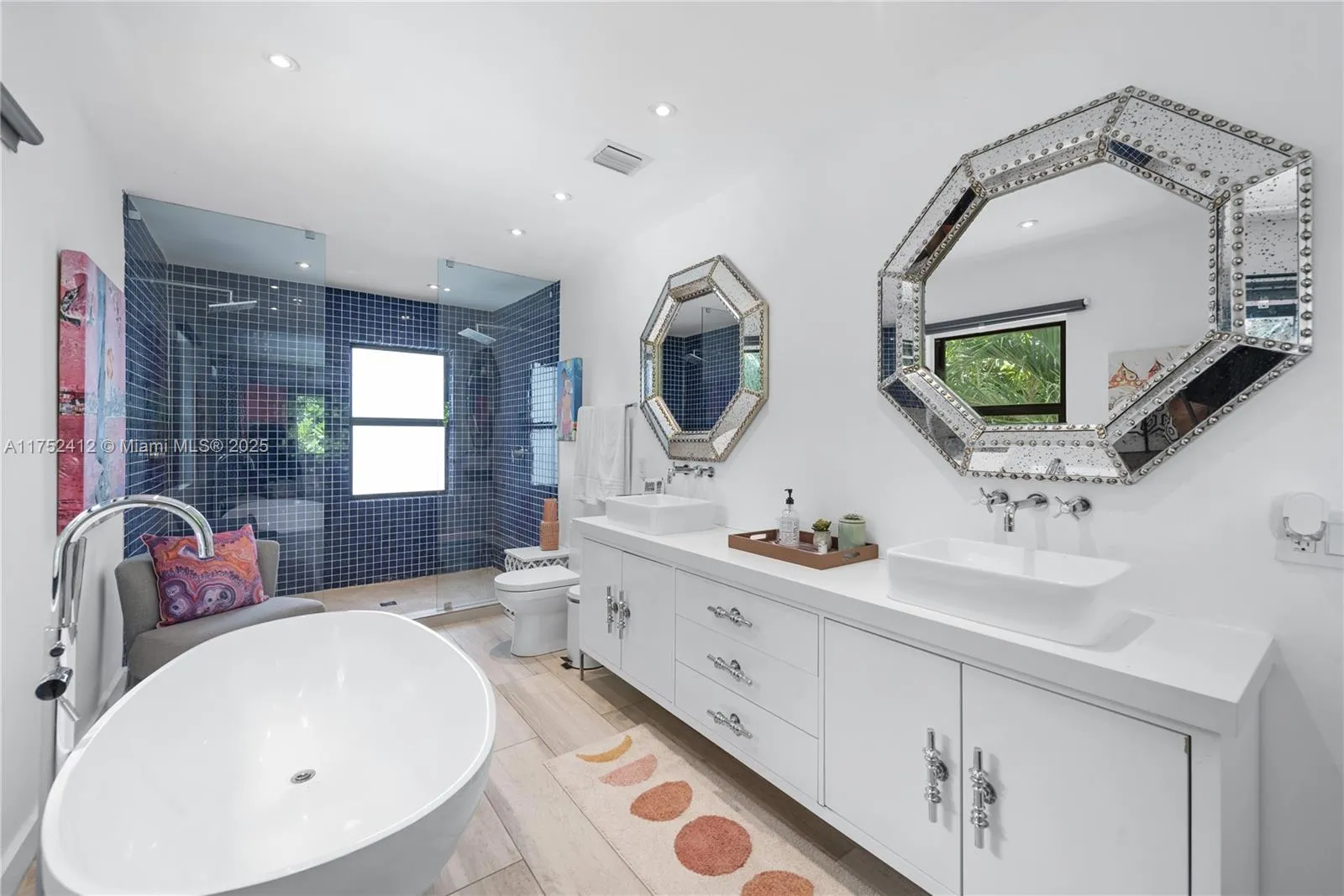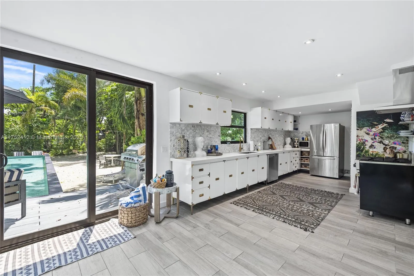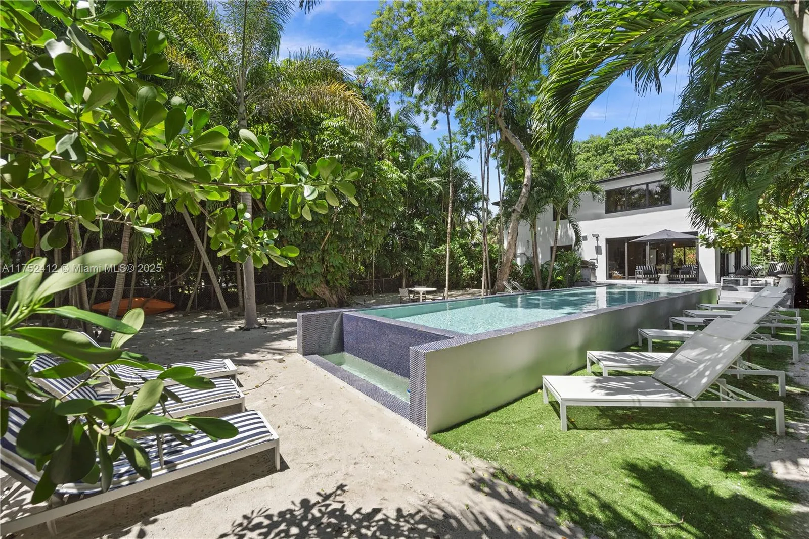 This stunning two-story villa in an elegant neighborhood offers breathtaking bay views and upscale design. It features a master bedroom with a king bed and private bathroom, a second king-bed bedroom, and a kid-friendly room with three bunk beds. The ground floor has a spacious living room, a fully equipped kitchen, and a toilet, while the first floor houses all bedrooms and a private balcony with bay views.rnrnRelax in the private backyard with a heated infinity pool surrounded by beach sand and a BBQ grill. Blending Art Deco elegance with modern amenities, this Miami retreat is near Wynwood, South Beach, and top restaurants, comfortably accommodating nine guests. Your unforgettable Miami experience awaits! Rental rates may vary based on stay length and season for stays under six months