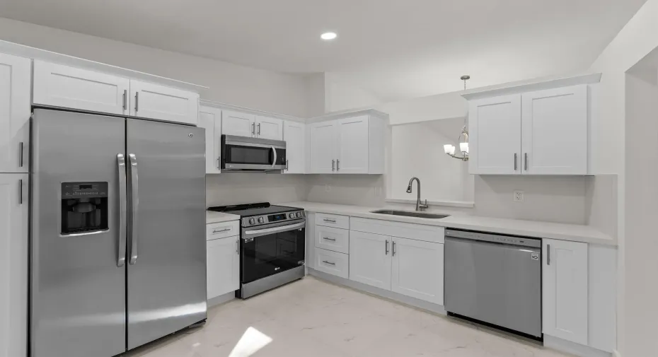 Welcome to your new oasis in the highly sought-after community of Whisper Walk. This stunning residence has been meticulously renovated from top to bottom, offering timeless style with modern comfort. Step into your chef’s kitchen, beautifully appointed with LG stainless-steel appliances, quartz countertops, and designer-grade soft-close cabinetry. Enjoy casual mornings in the charming breakfast nook. The oversized living and dining area is perfect for relaxation or entertaining, showcasing elegantly crafted marble flooring throughout. Retreat to the bedrooms where you’ll find luxury flooring, thoughtfully designed layouts, and spa-inspired modern bathrooms. Unwind with a cup of coffee or a glass of wine on the air-conditioned patio overlooking lush, green garden views, your personal